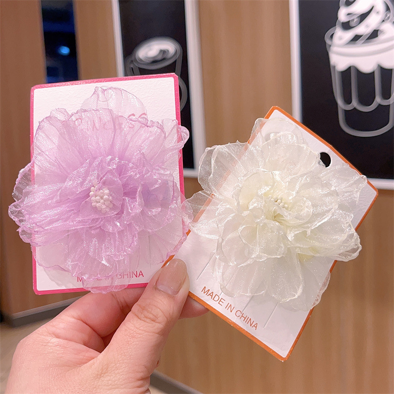 scorched-edge big flower -- off-white barrettes