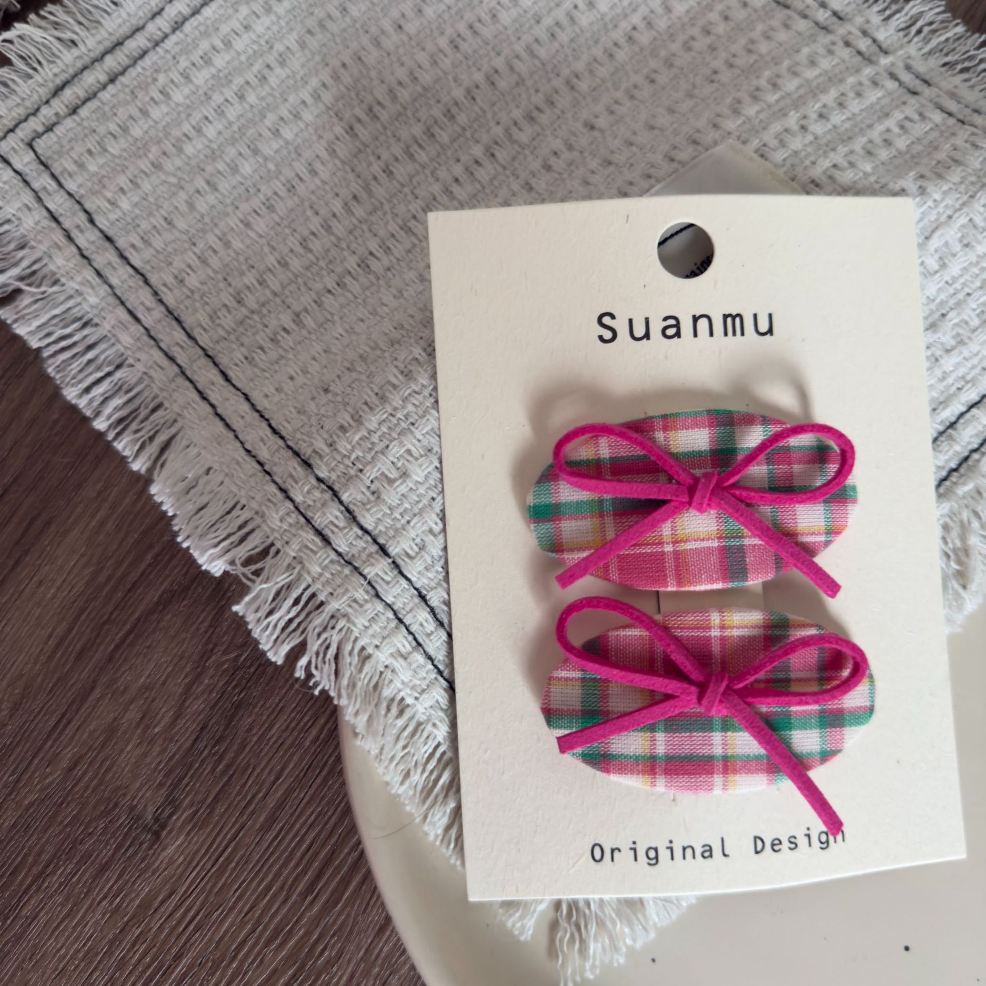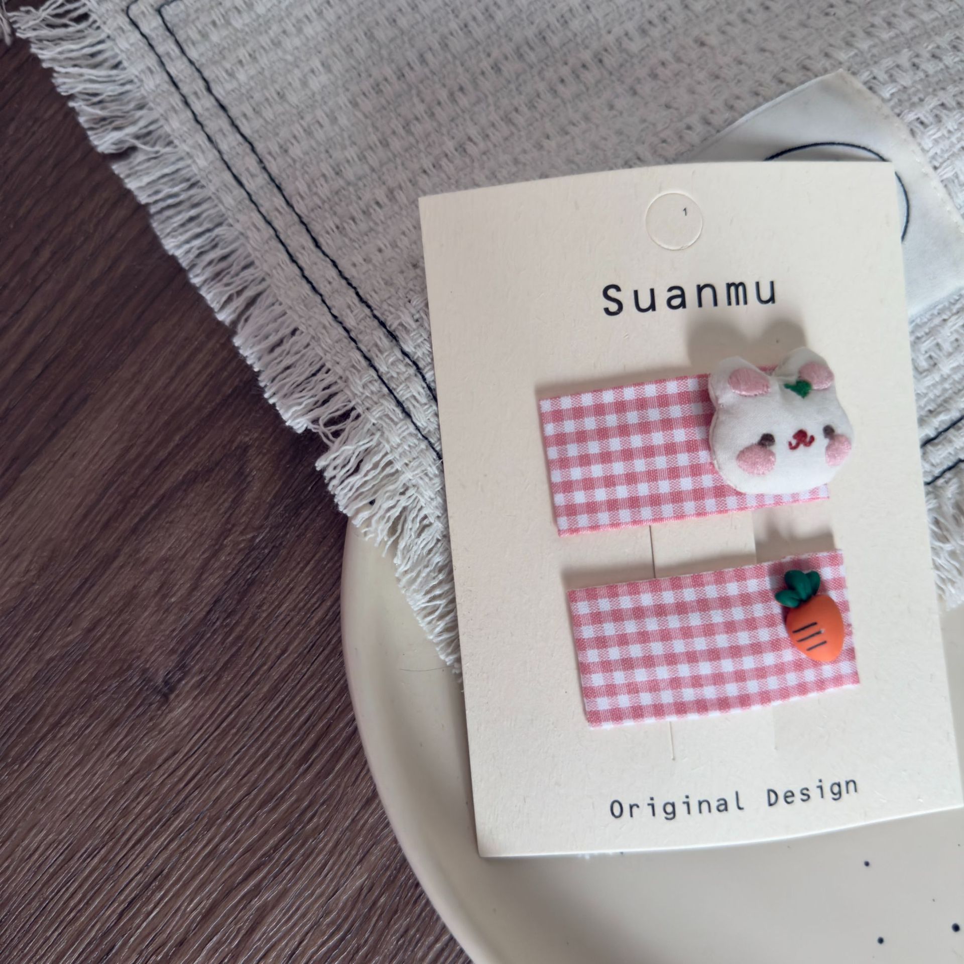 2 pink plaid little rabbit radish