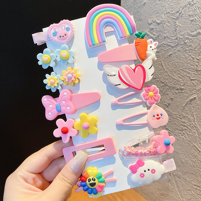 6# new pink little rabbit children's barrettes (14-piece set)