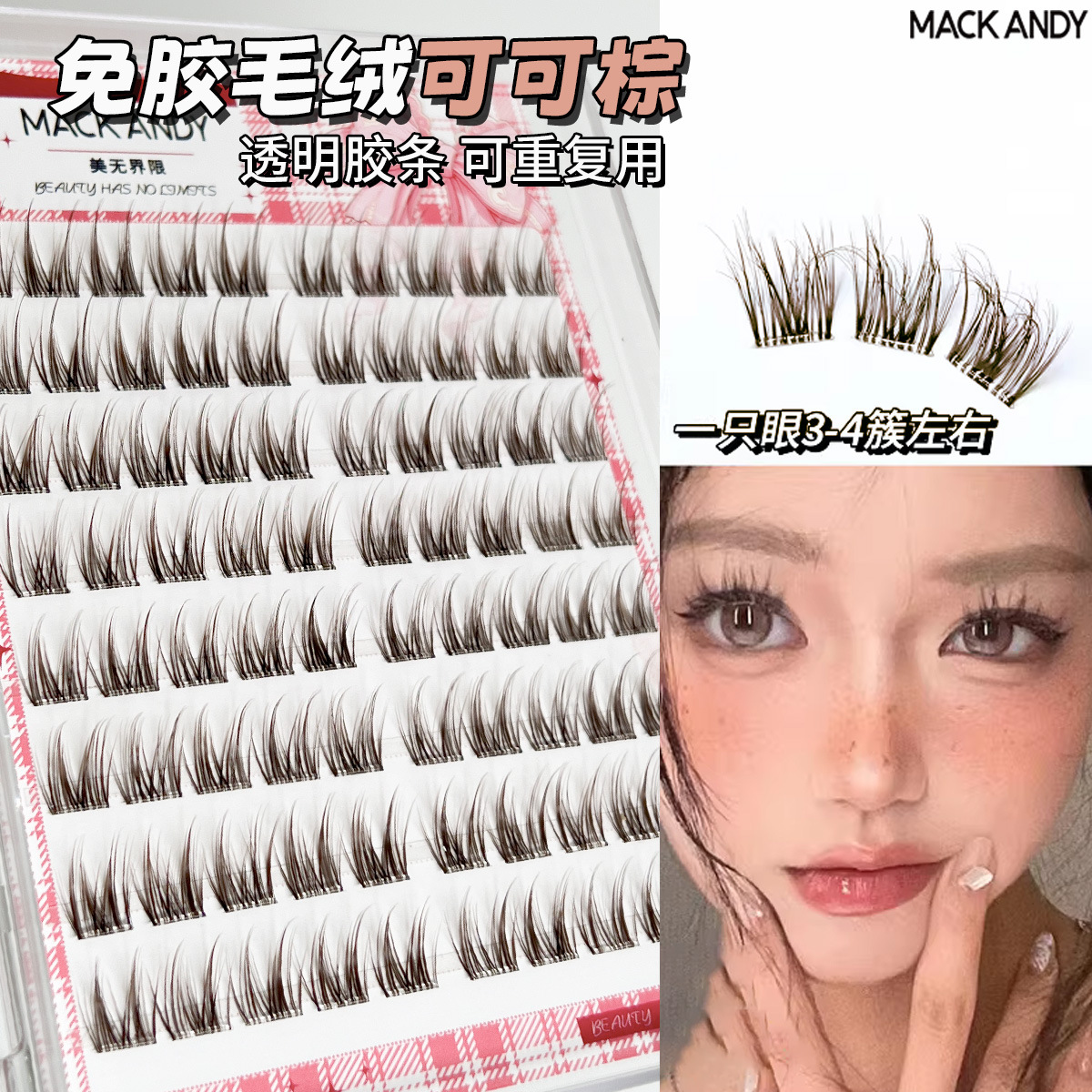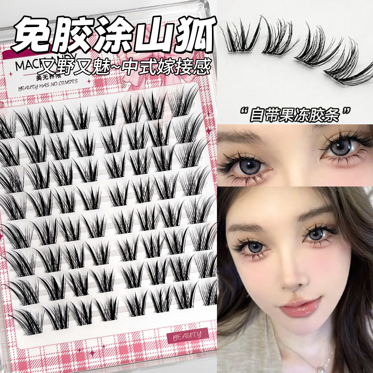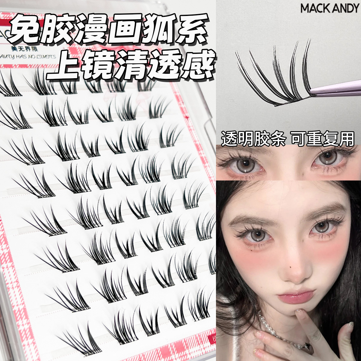 8 rows of lazy cat eyelashes (clear)-glue-free