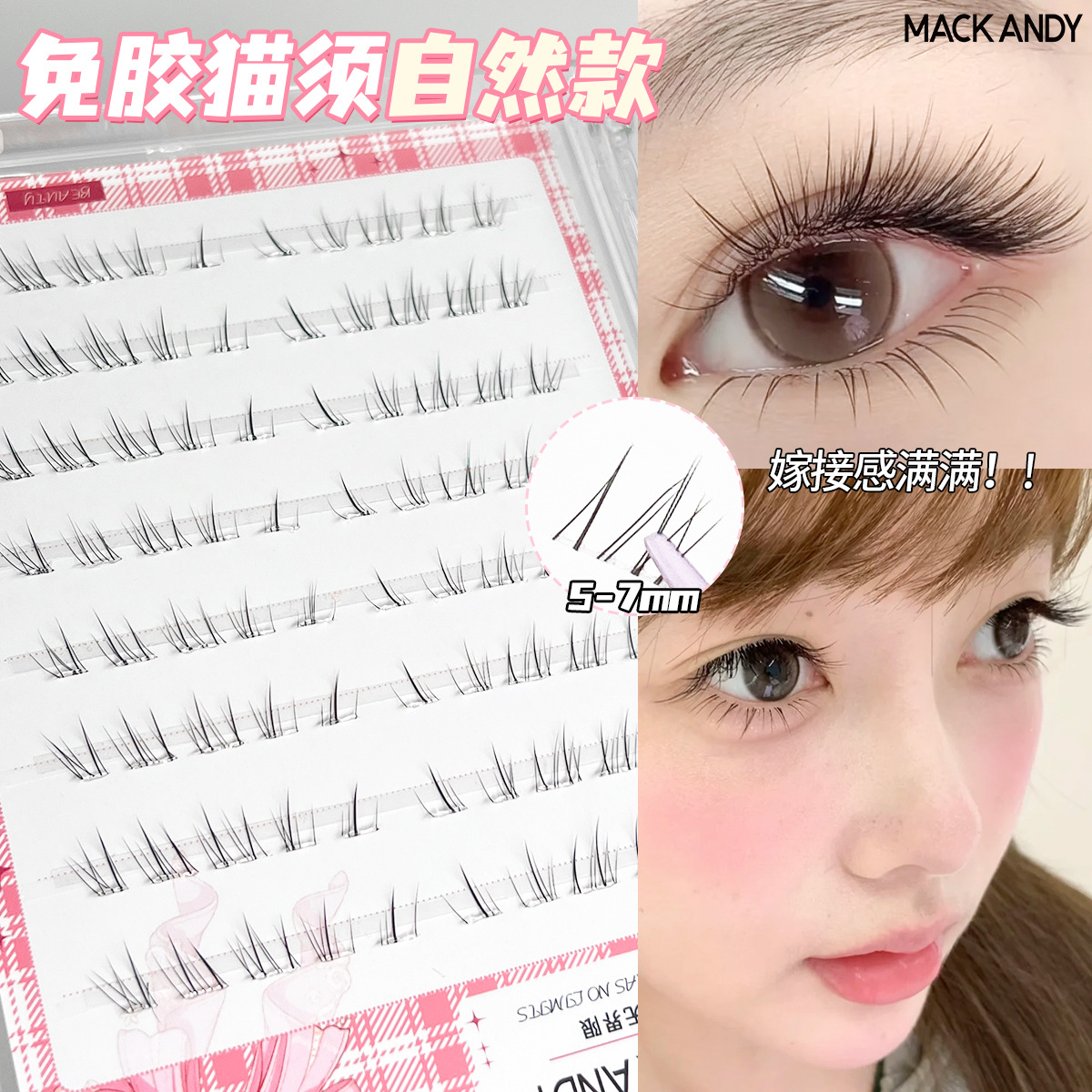 8 rows of 5d cat ear eyelashes-glue-free
