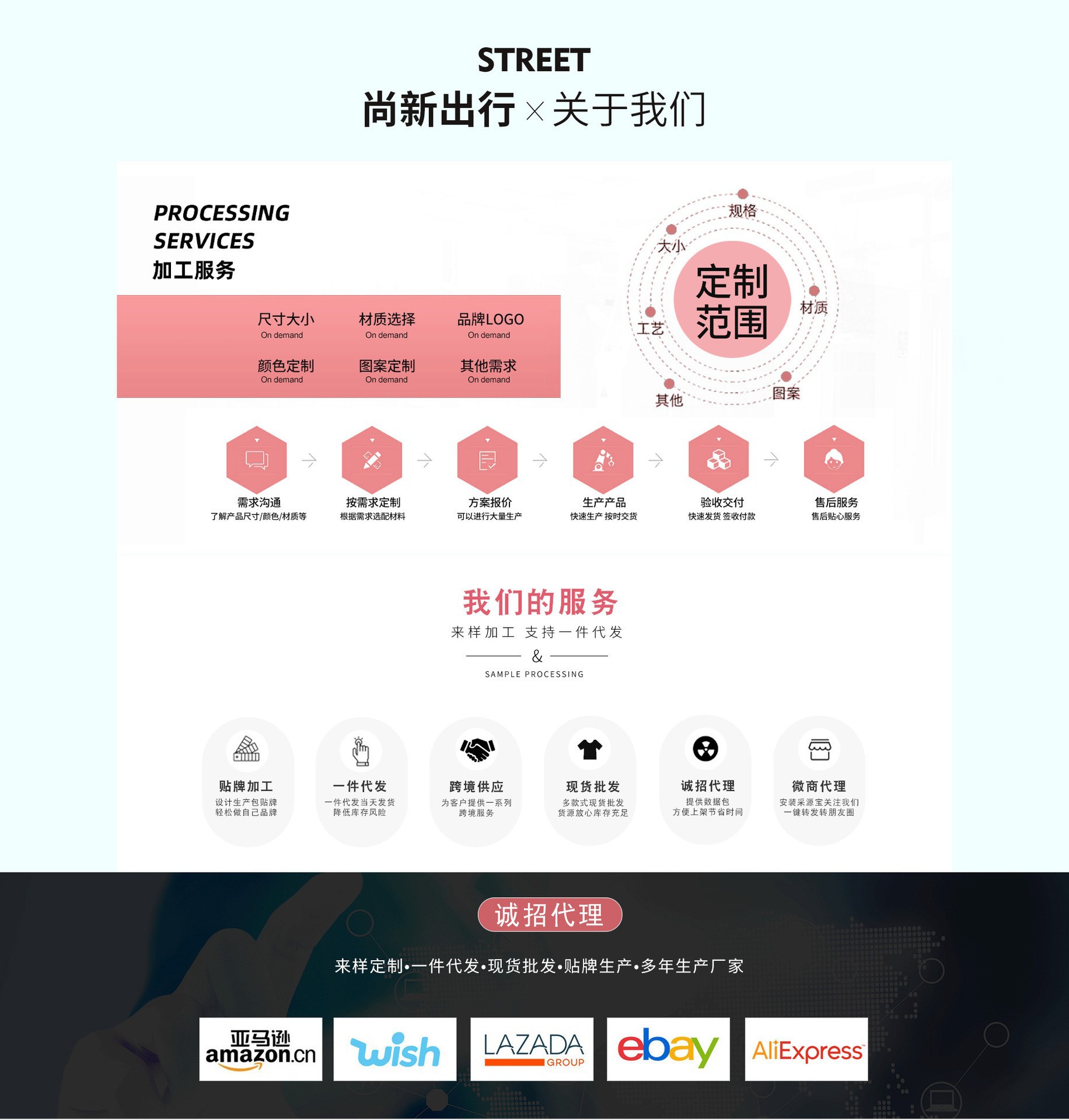 main downstream platforms: taobao, ebay, amazon, wish, aliexpress