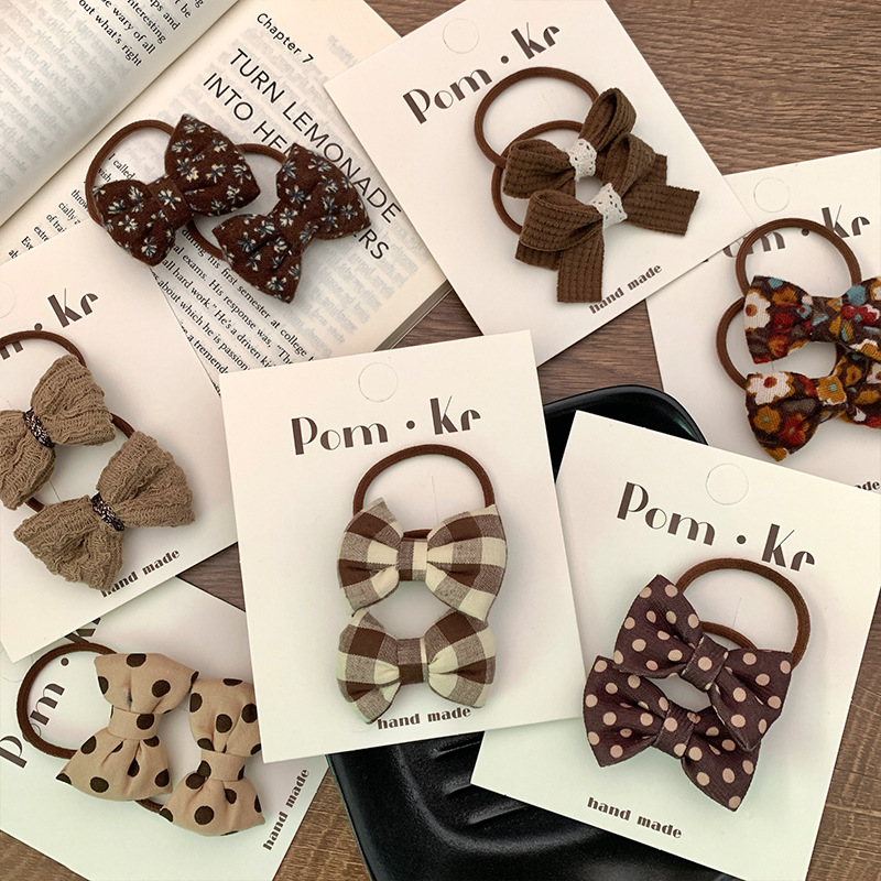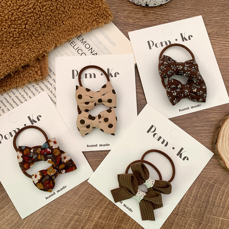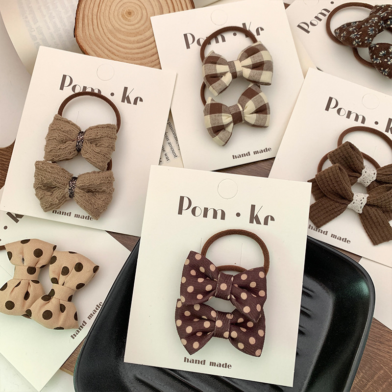 [6] coffee polka-dot bow tie pair