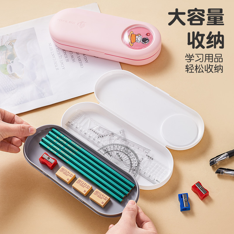 large pink pencil case (free 6-piece set of pencil sharpeners, color random)