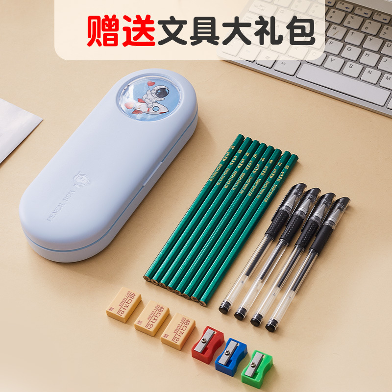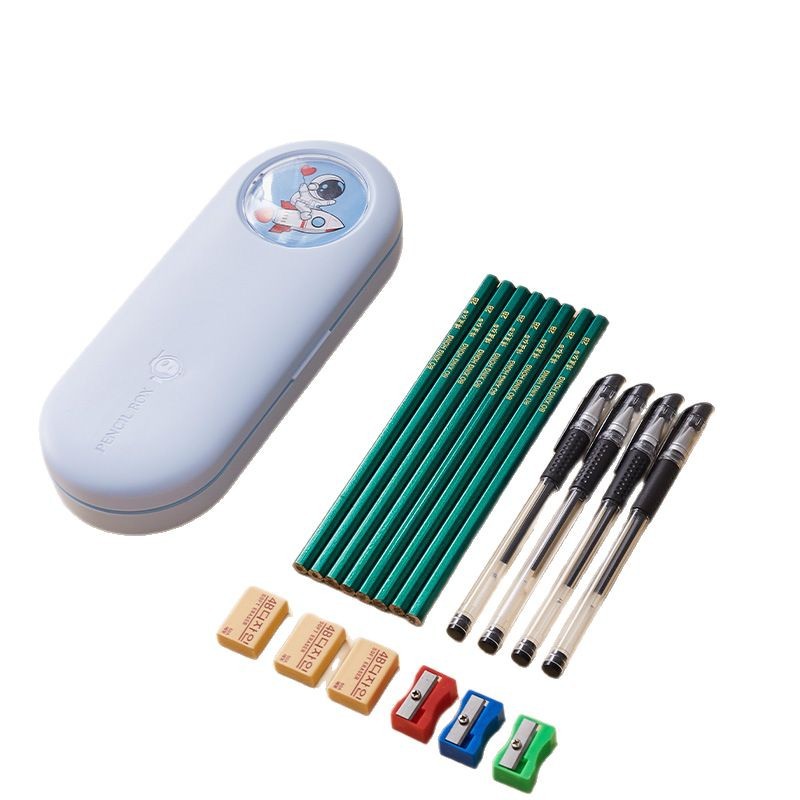 large blue-pencil case (free 6-piece set of pencil sharpeners, color random)