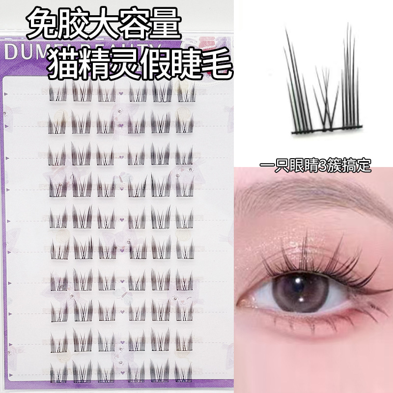 60 clusters 10 rows glue-free flakelet butterfly deer eyelashes (7-12mm)