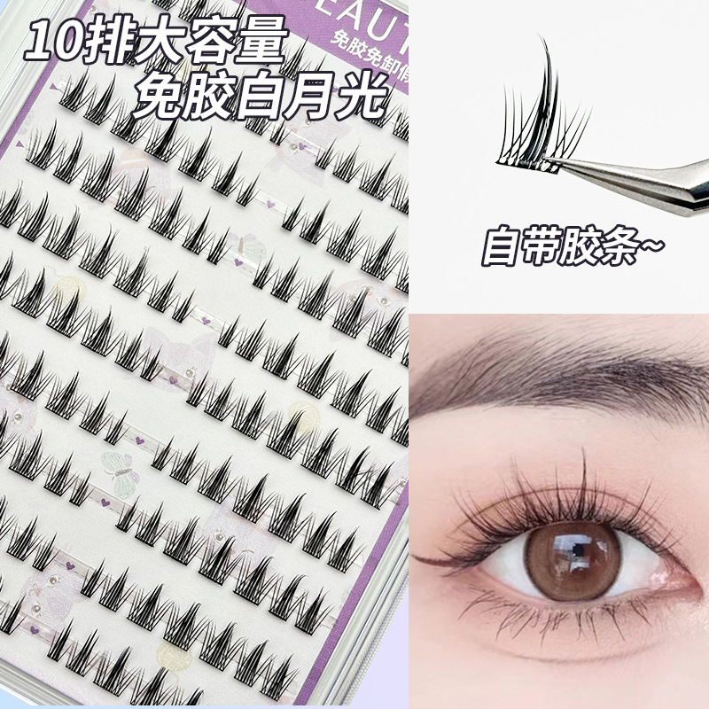 100 clusters 10 rows glue-free white magnolia false eyelashes (7-12mm)