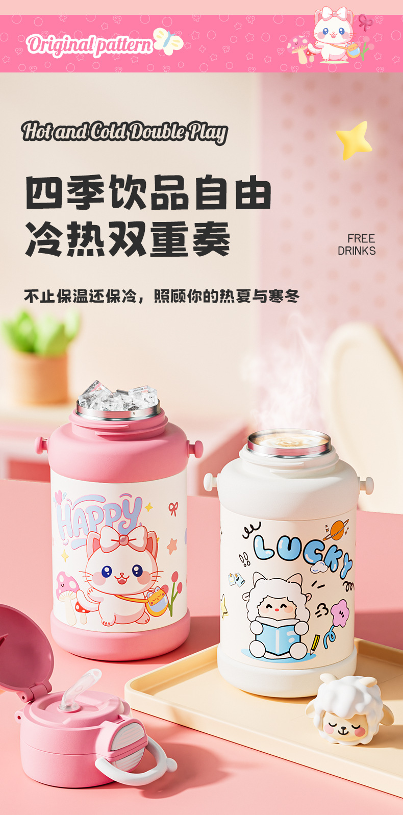 style: with rope handle, large capacity, with straw, with lock