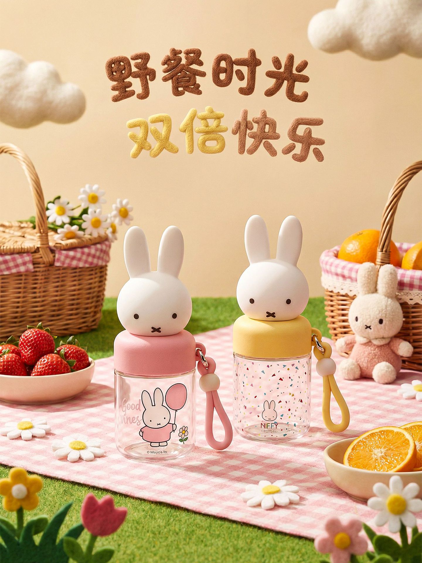 color: miffy rabbit-pink, miffy rabbit-yellow, miffy rabbit-bear
