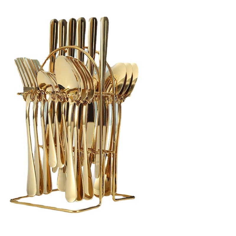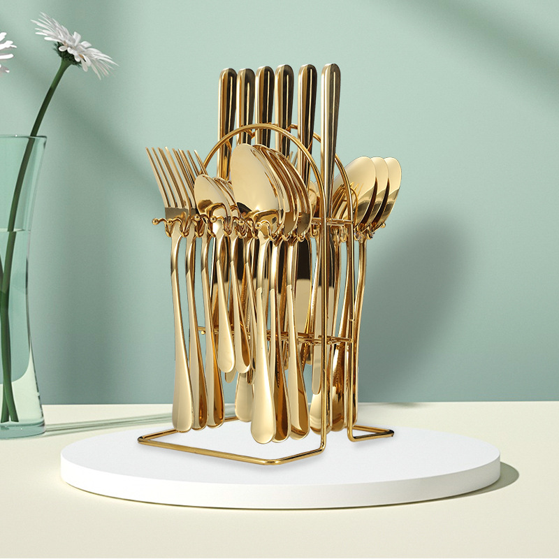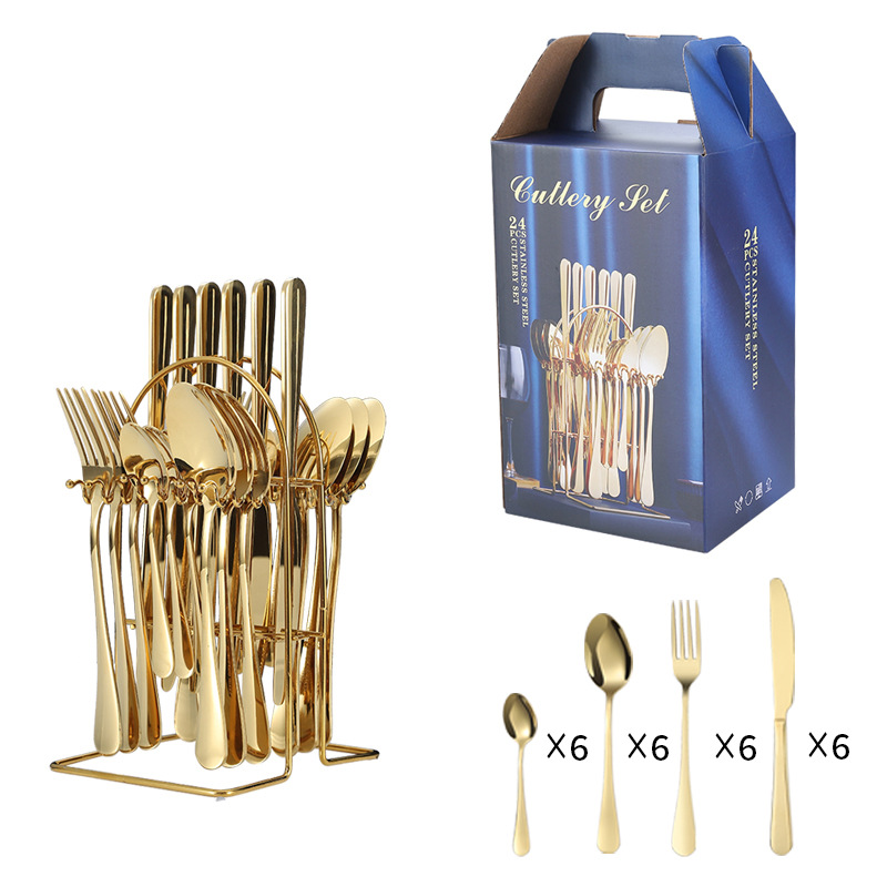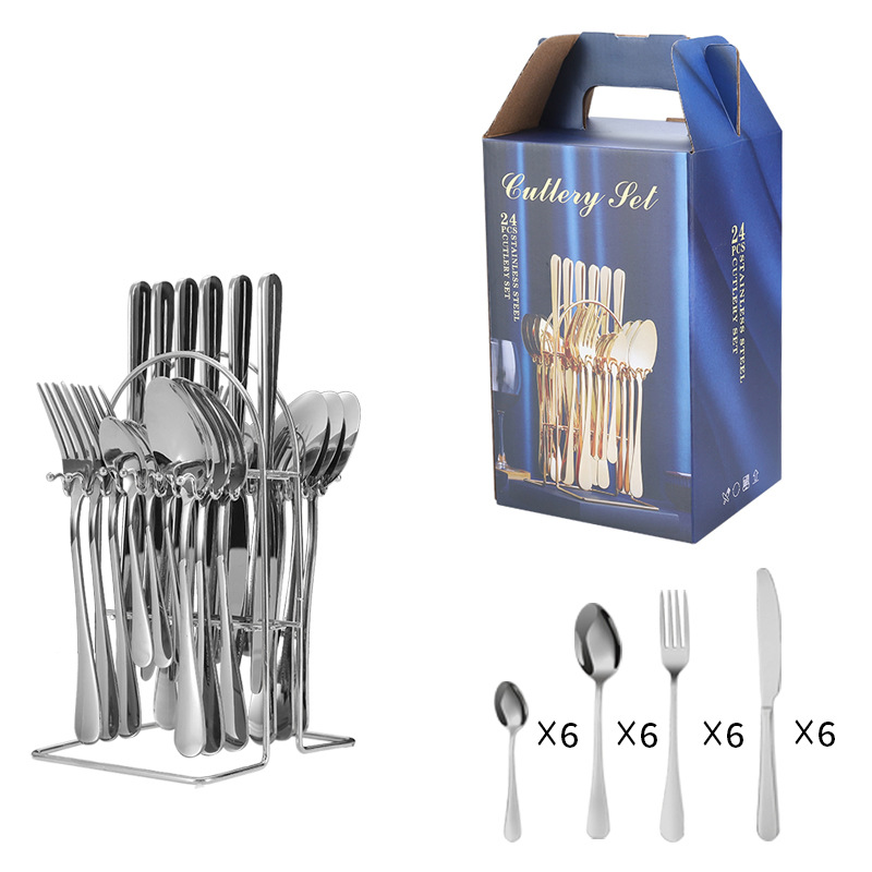 Amazon stainless steel knife, fork, and spoon set 24-piece 1010 four main piece cutlery rack gift box knife and fork set
