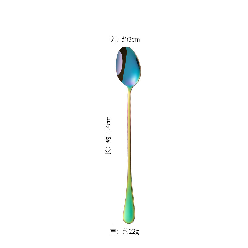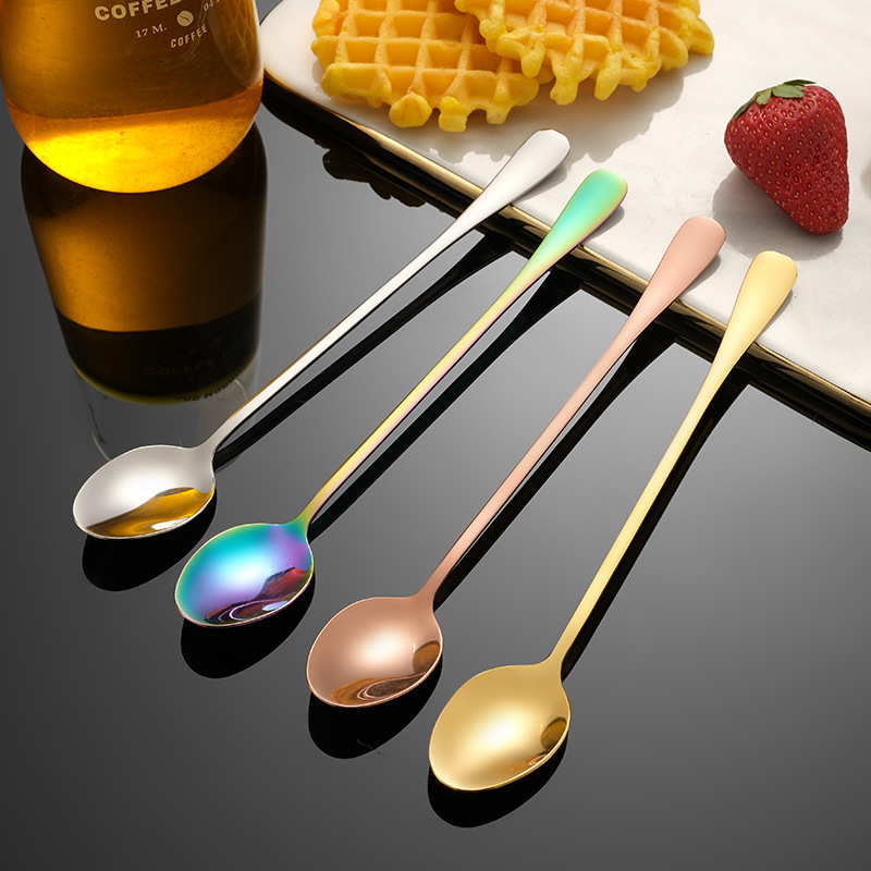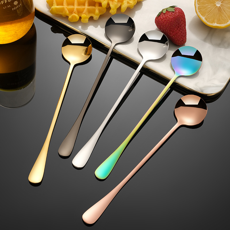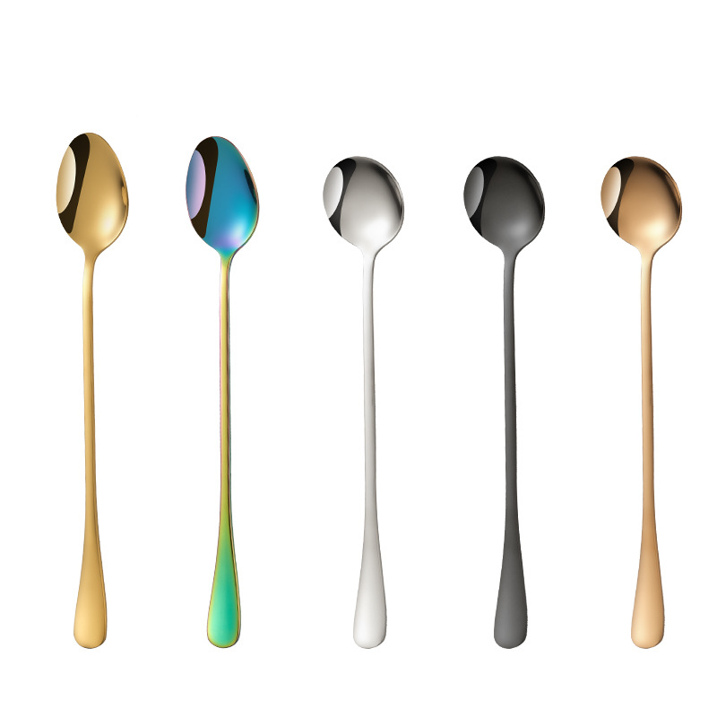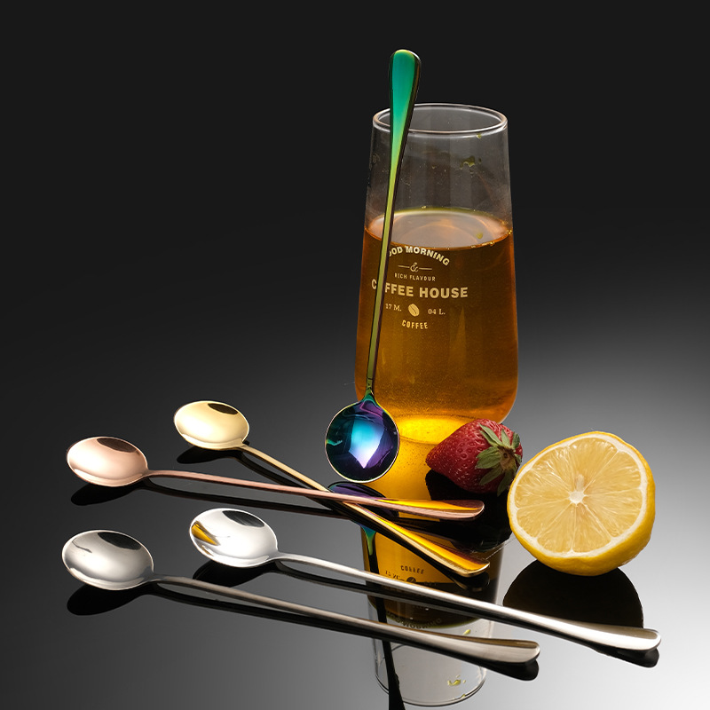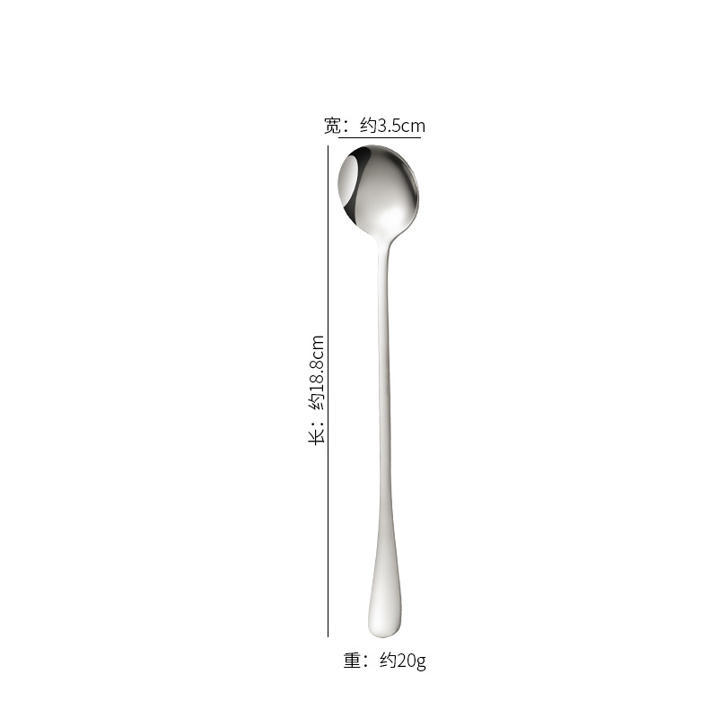 Long-handle ice spoon stainless steel spoon creative pointed spoon extended bar mixing honey coffee stirring round spoon cross-border direct supply