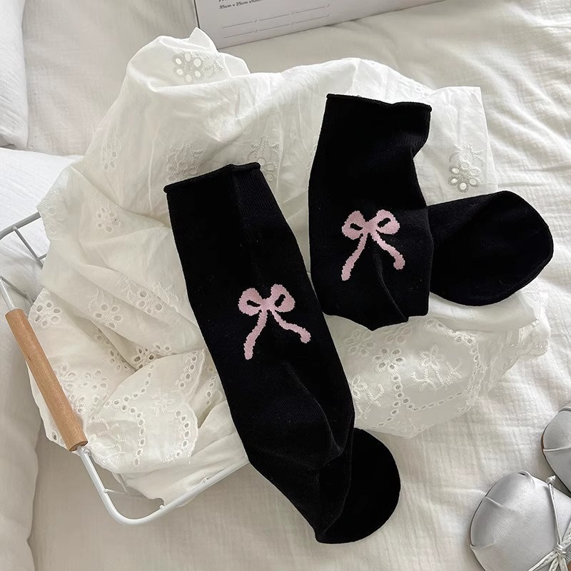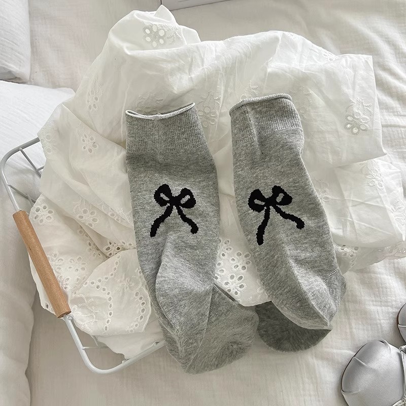 women's mid-calf [heel bow], male socks [flat color mixing]]