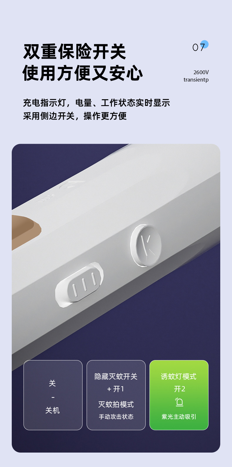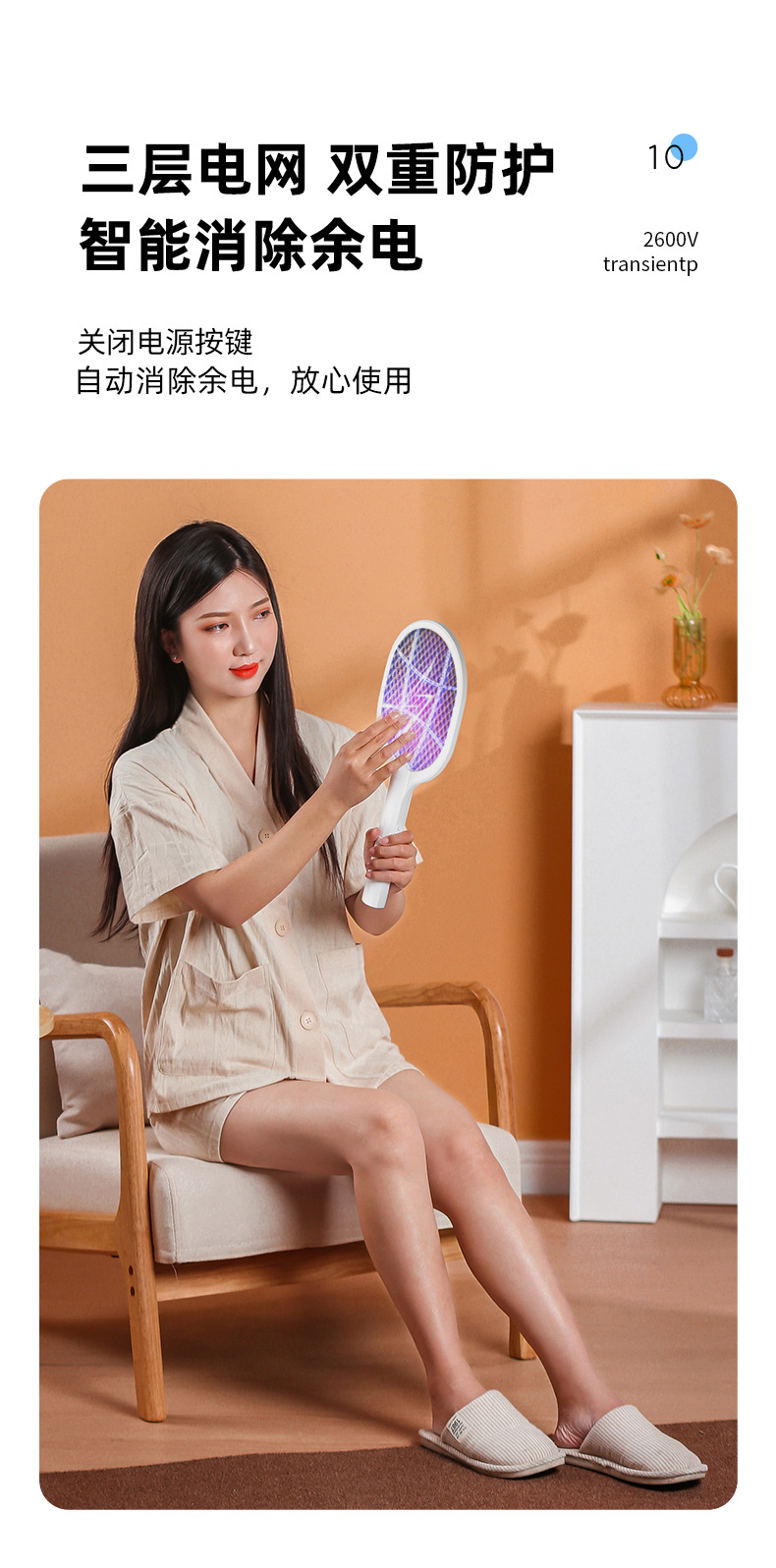 usb direct-plug mini electric mosquito swatter [white]