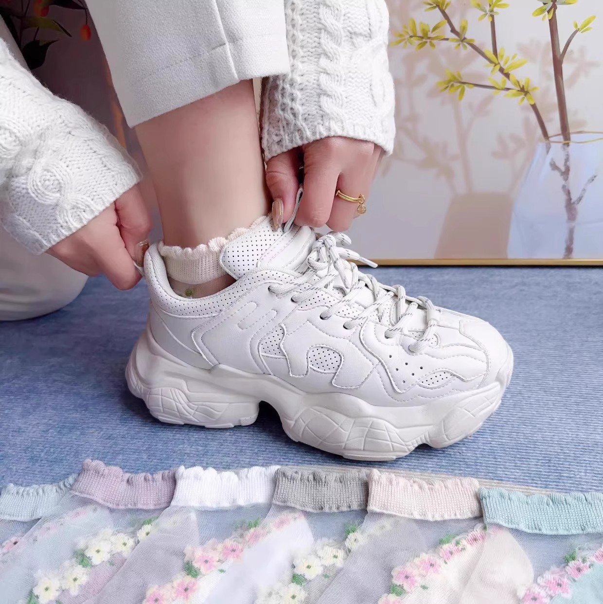 female kanekalon [kanekalon small floral], male socks [flat color mixing]]