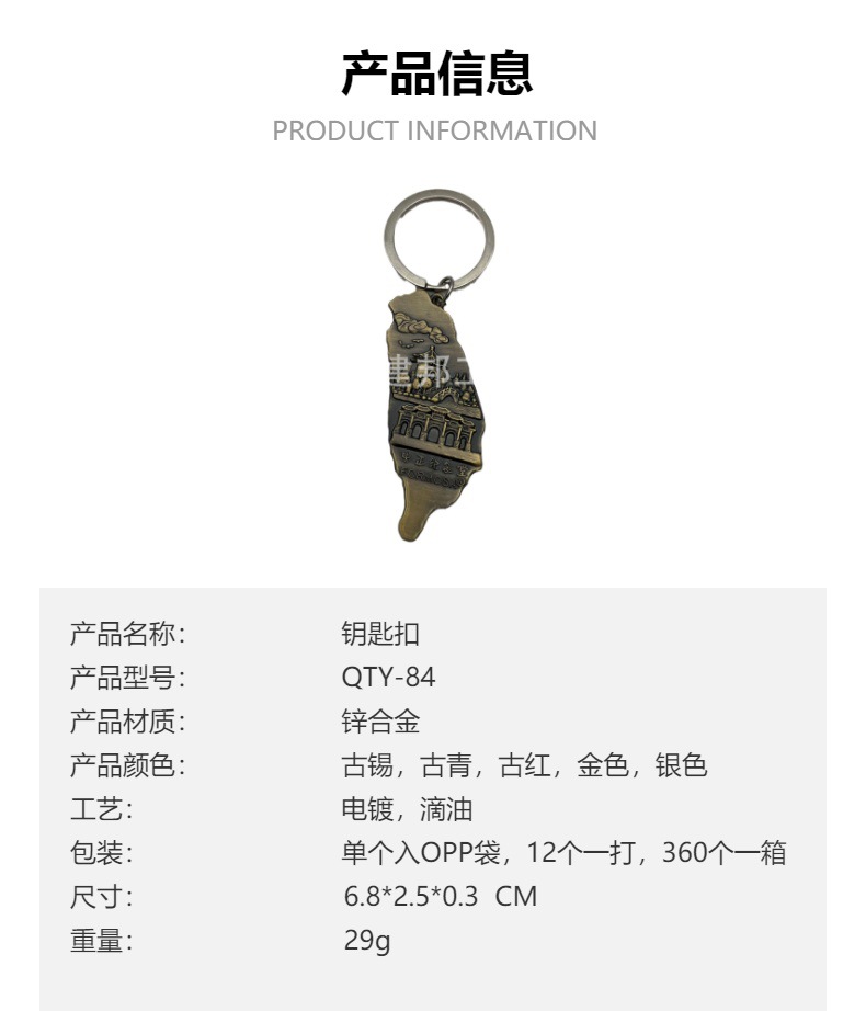 factory customized tourist souvenir france paris china taiwan zhongzheng memorial hall zinc alloy key ring pendant