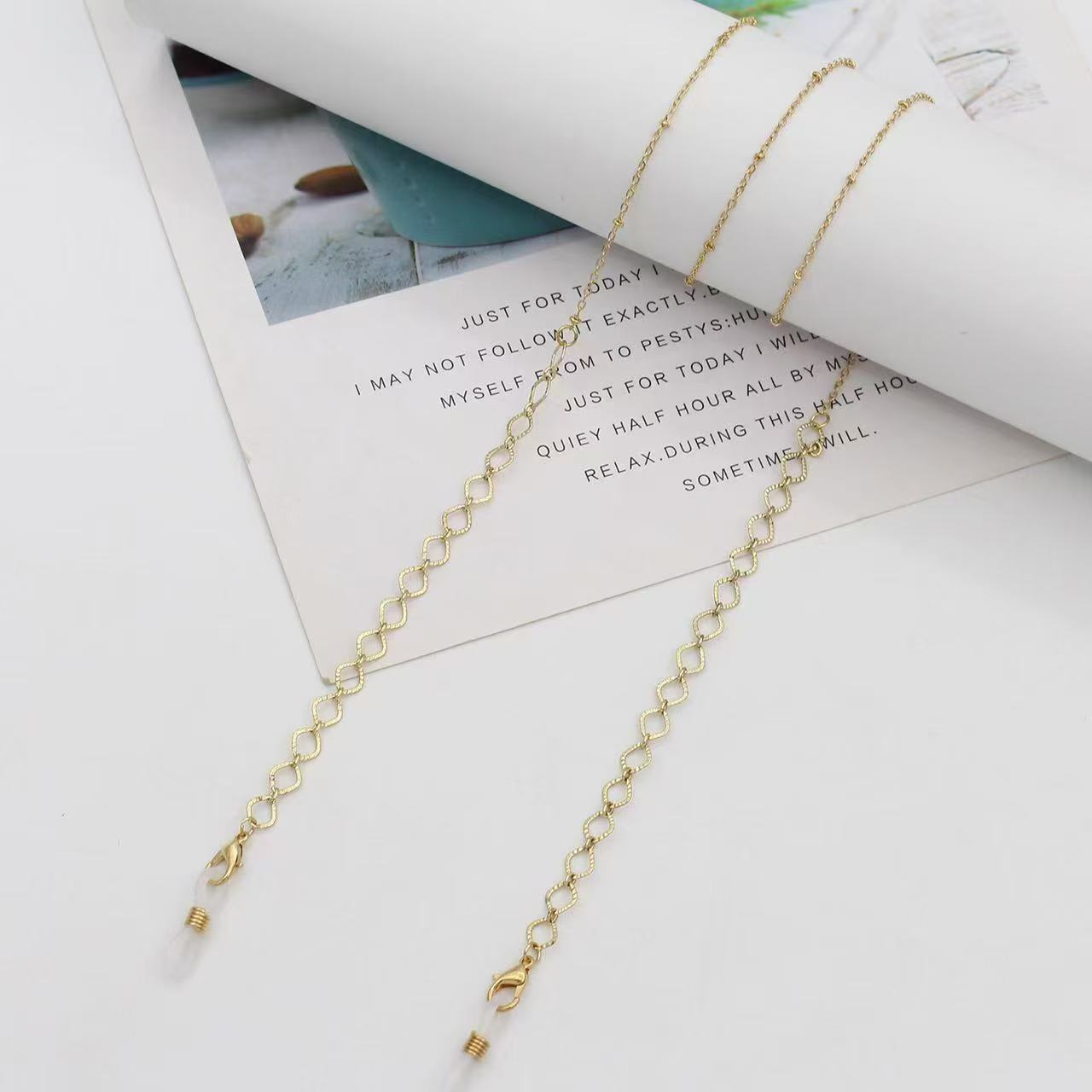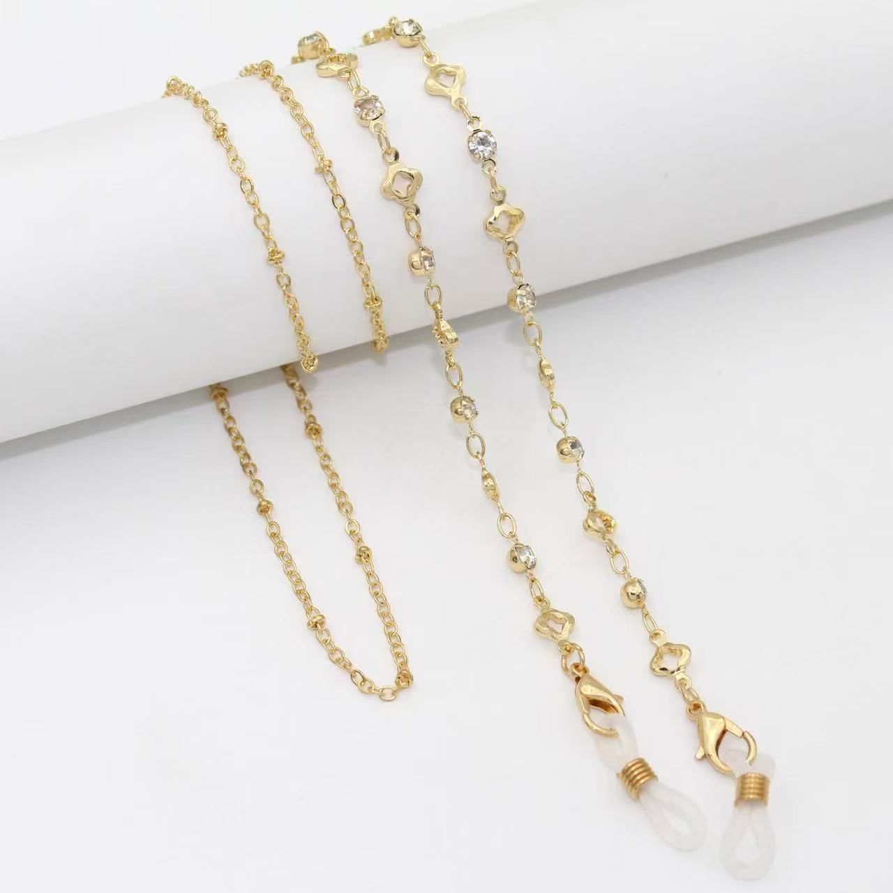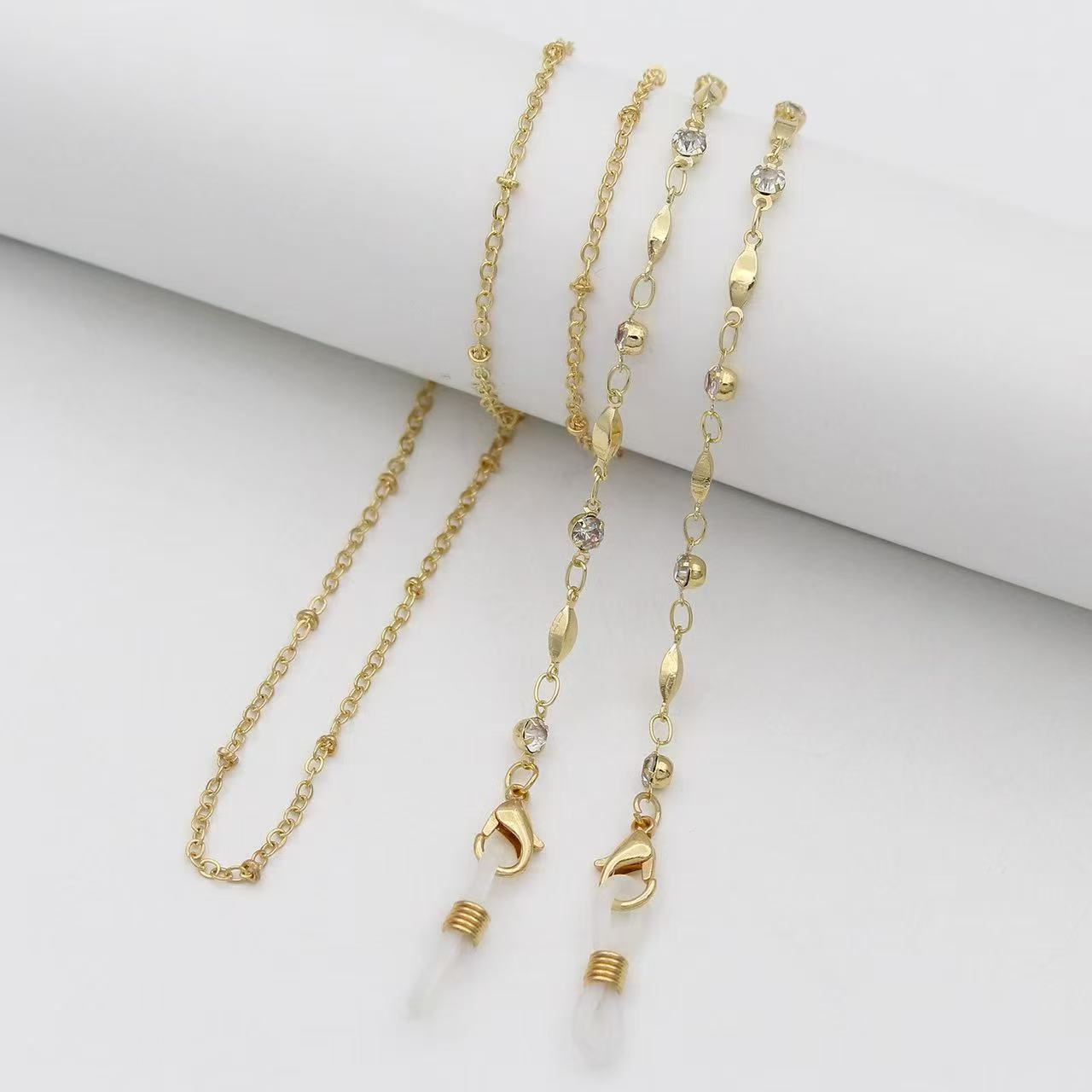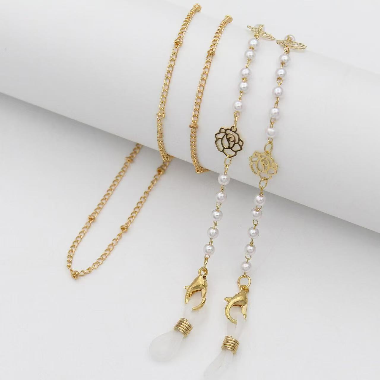 blue glasses pearl chain gold