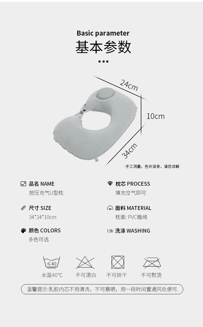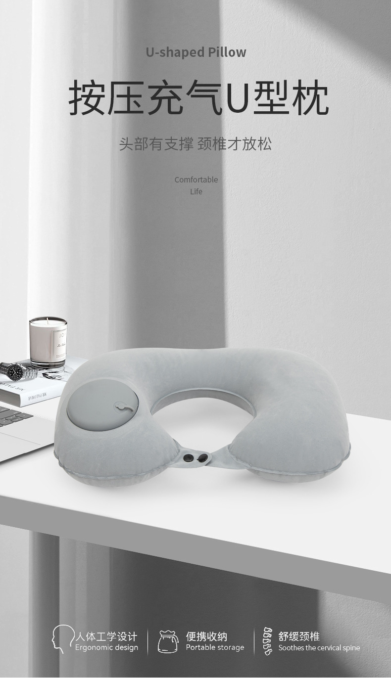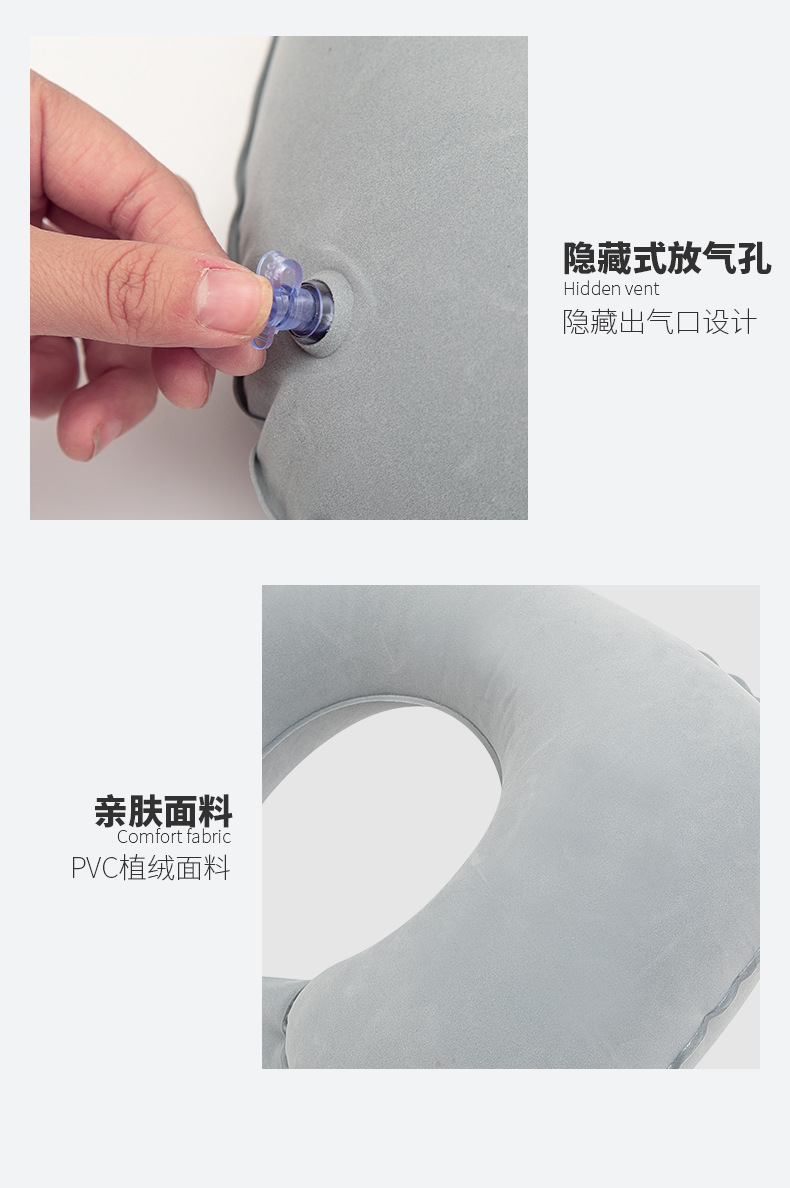 flocked u-shaped pillow-light gray