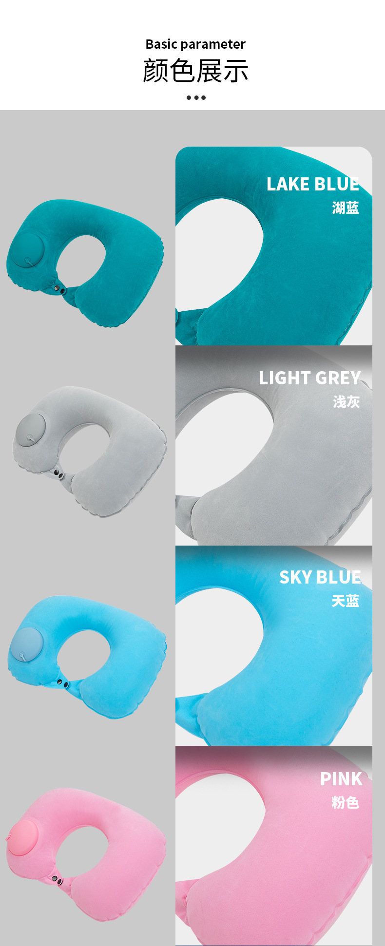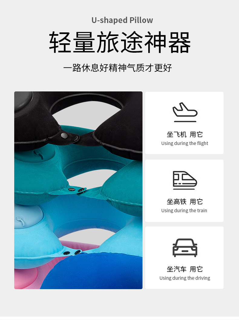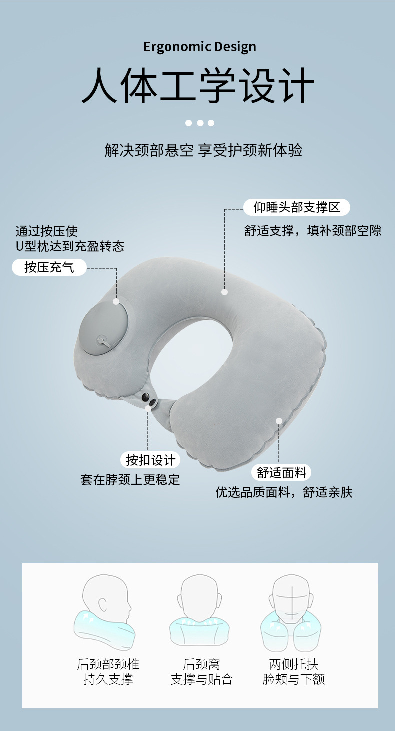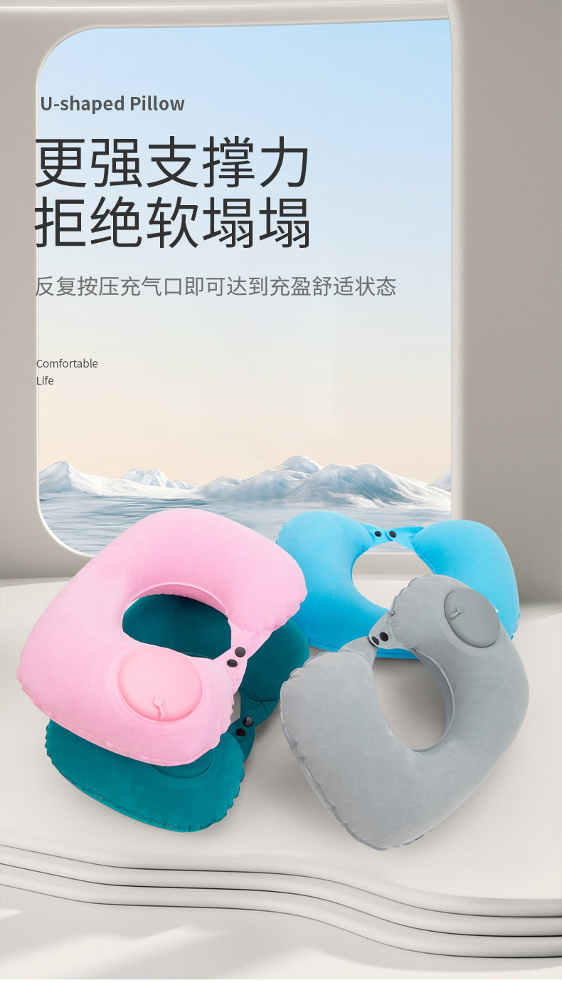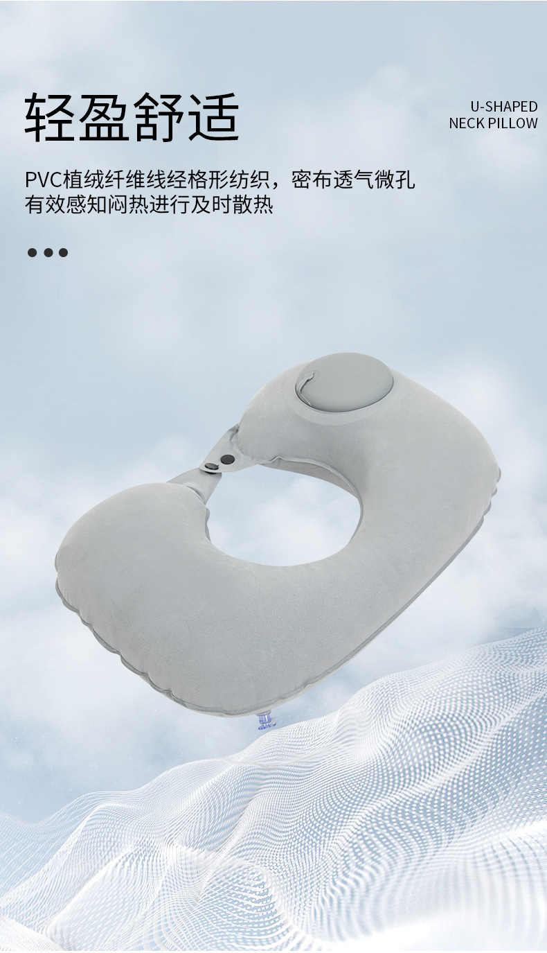 flocked u-shaped pillow-sky blue