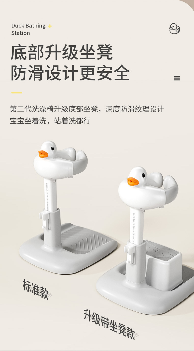 [assembled height adjustable non-slip] gray white duck head bath stool