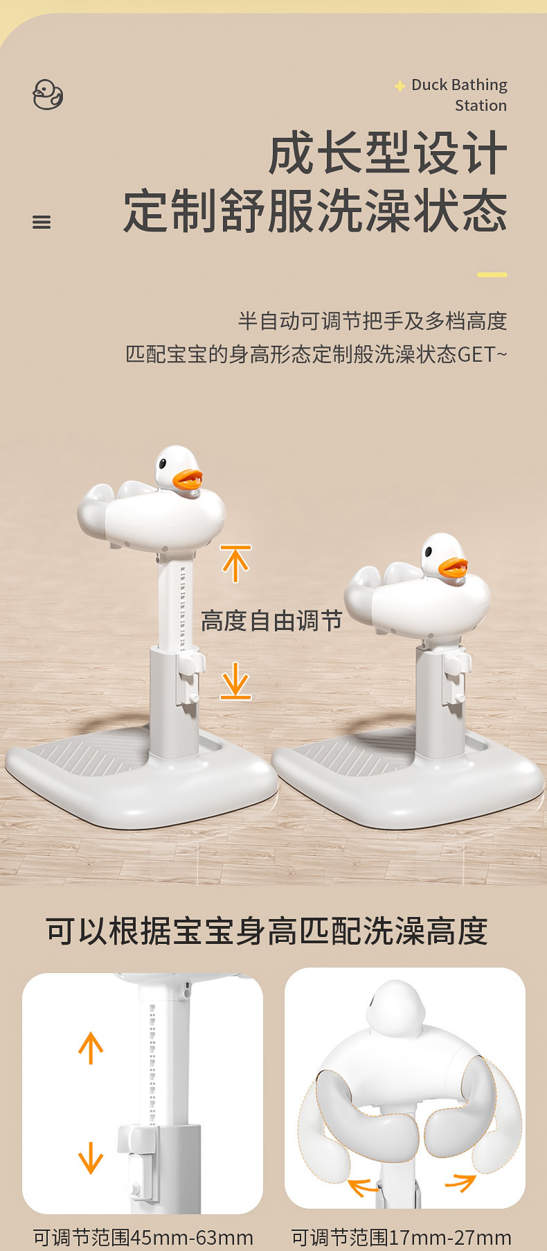 [assembled height adjustable non-slip] khaki duck head bath stool