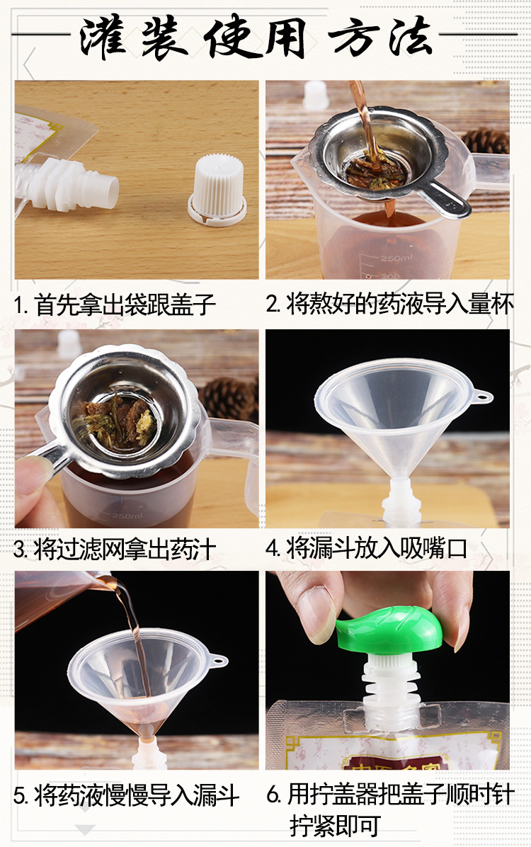 golden traditional chinese medicine bag 250ml; pe+pet