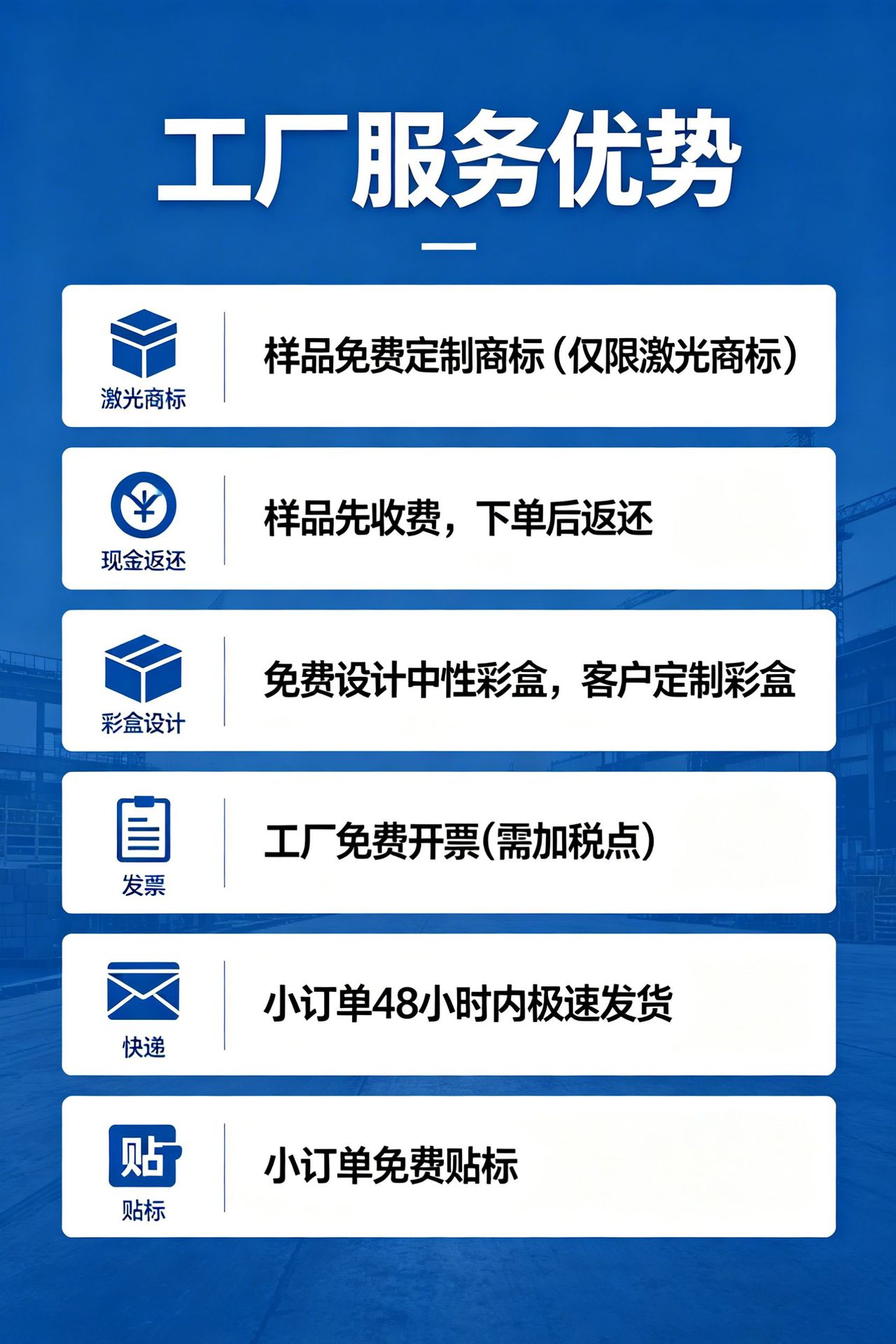 ✅ Sample policy: Sample delivery within 3-5 days, mass production orders can be used to offset the sample cost.