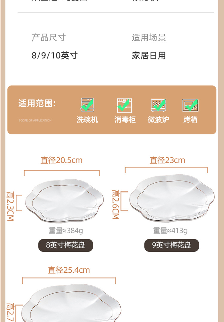 9-inch double-gold-line plum blossom plate