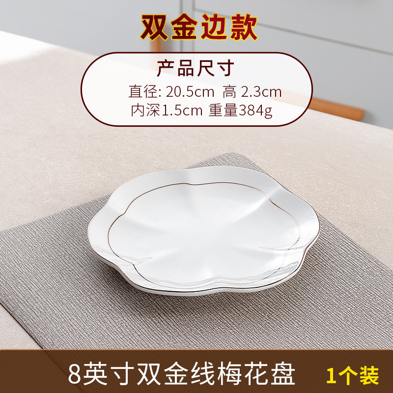8-inch double gold-trimmed plum blossom plate