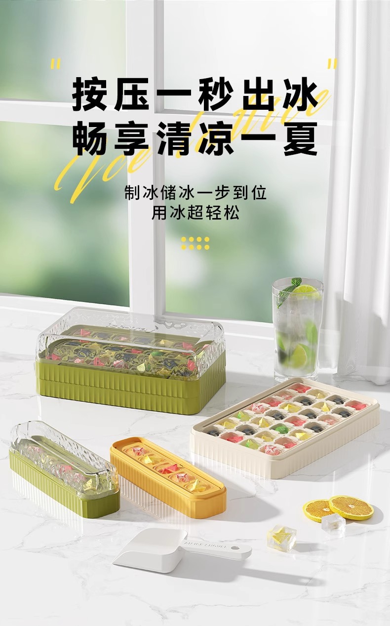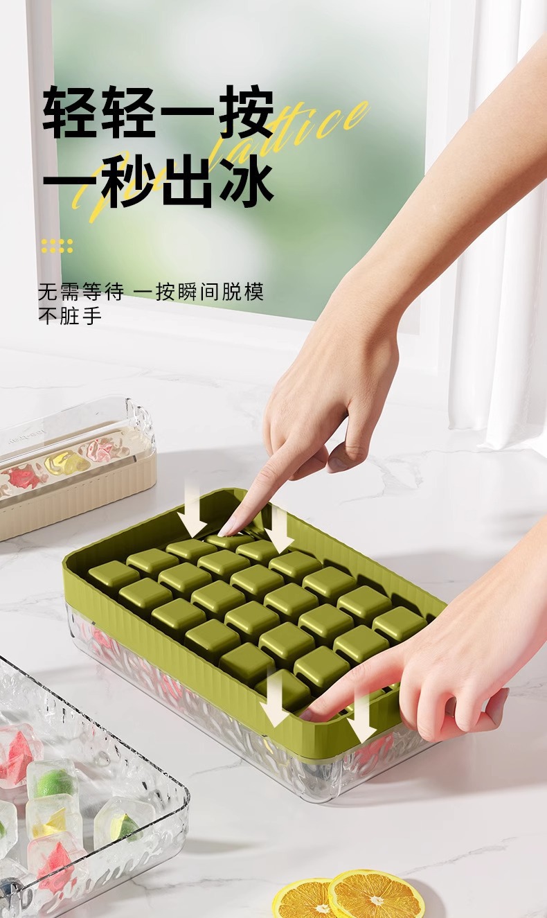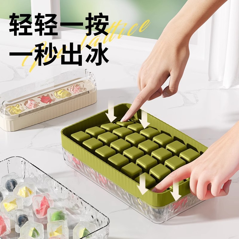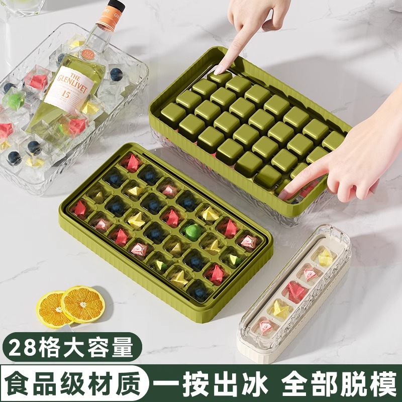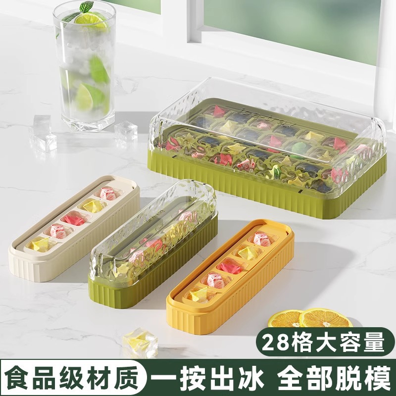 ice cube mold, household ice tray, storage box, refrigerator ice cube box, mini covered ice tray, press-to-release ice