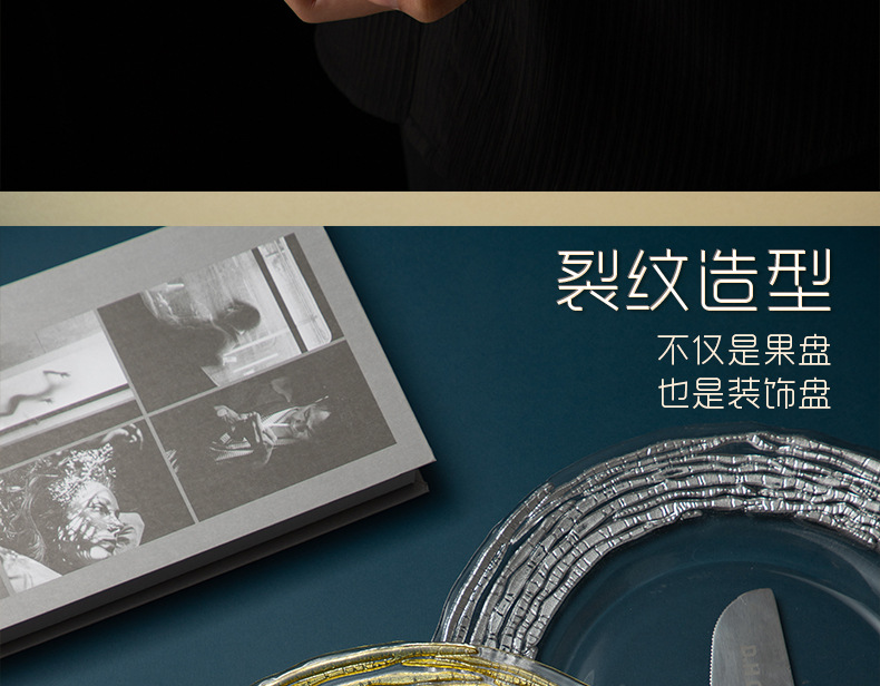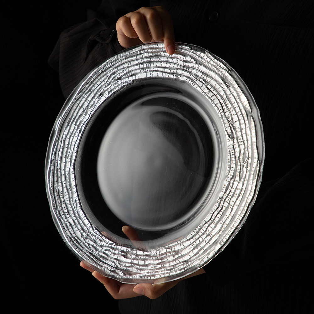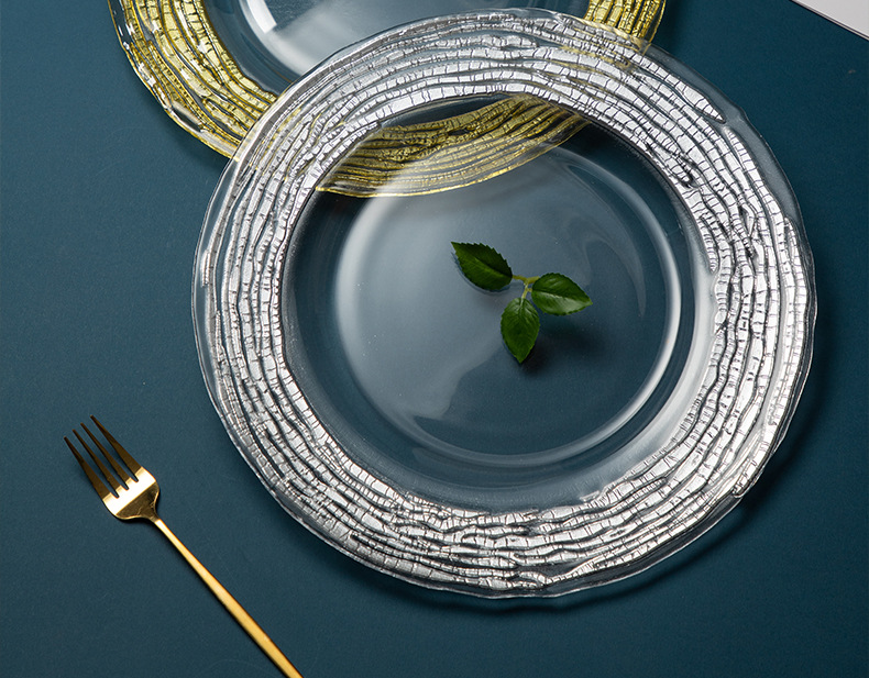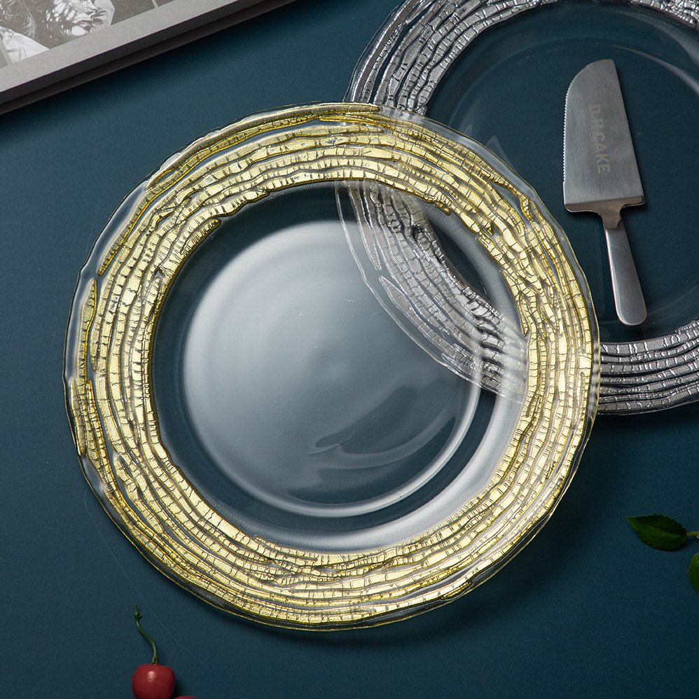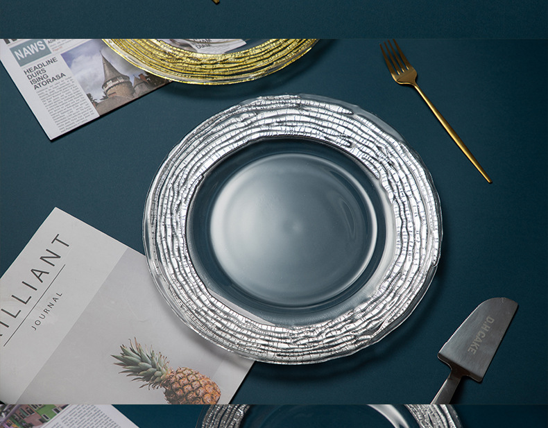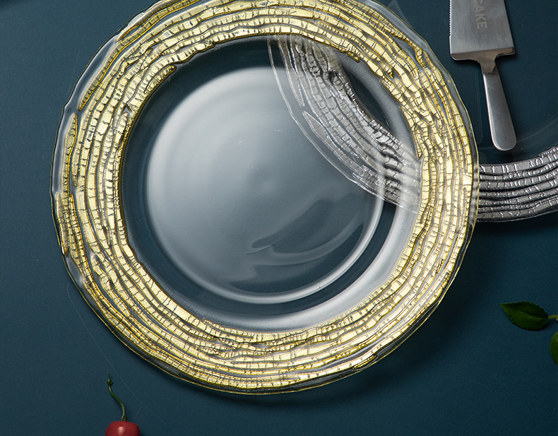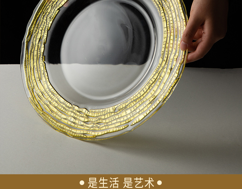 good-looking corrugated simple exhibition hall decoration model room transparent dining plate household living room large gold fruit plate light luxury