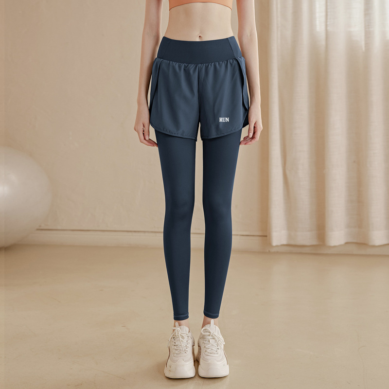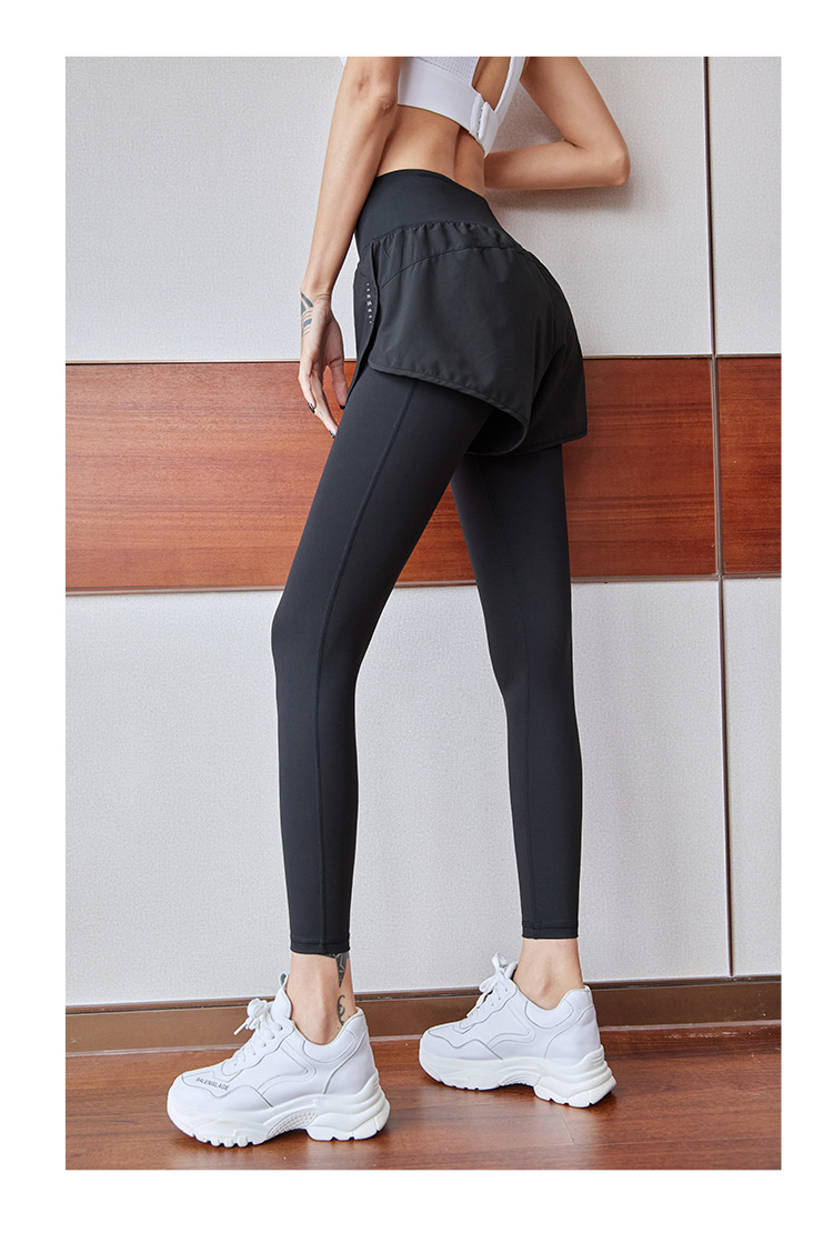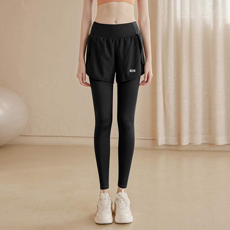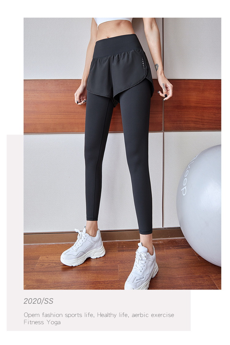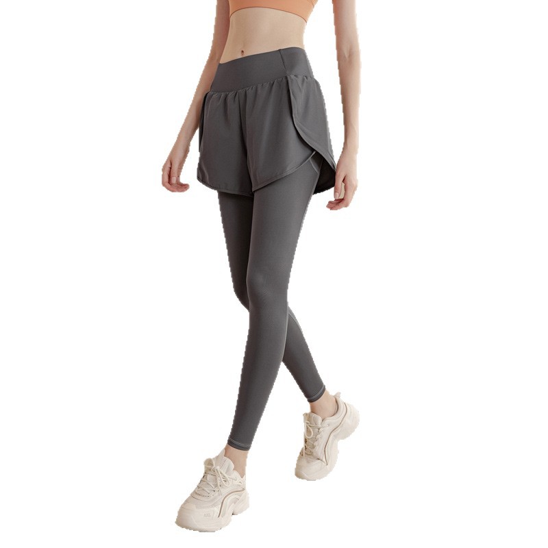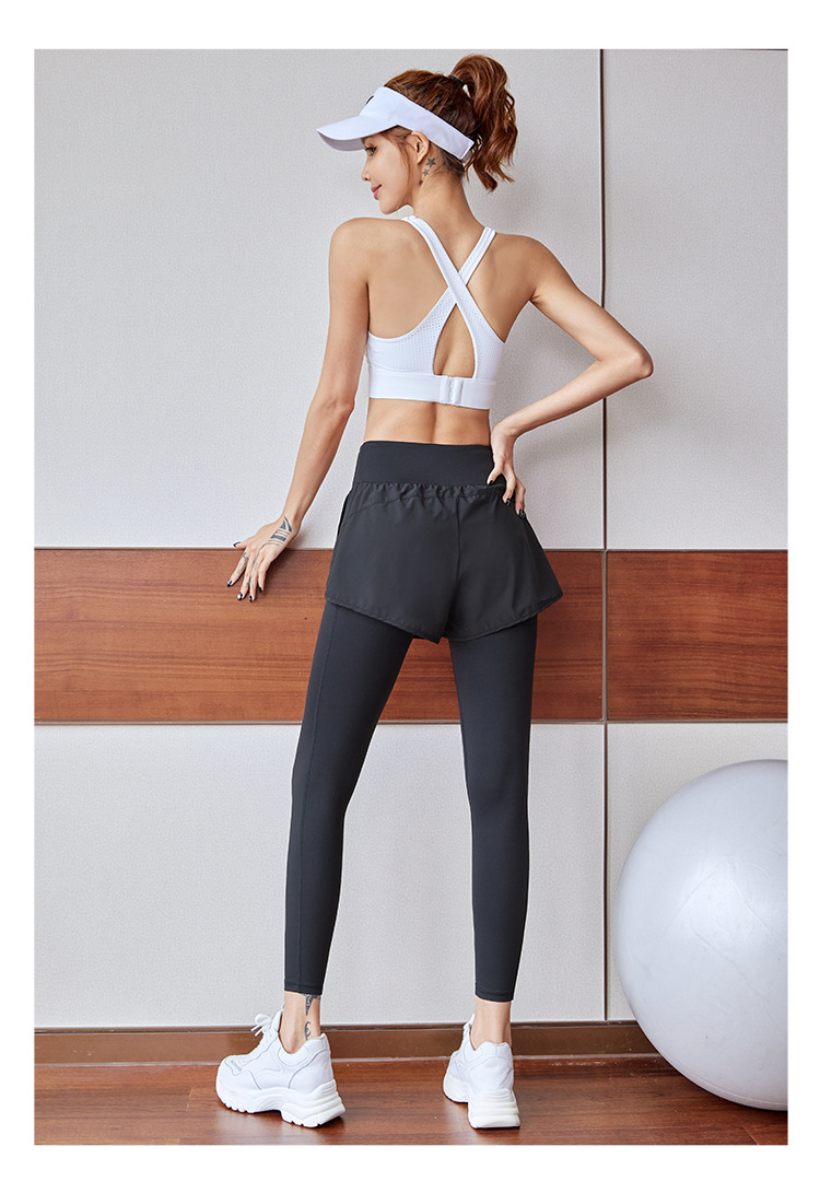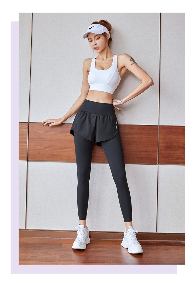 fake two-piece sports trousers women's spring and summer anti-exposure fitness pants badminton clothing running yoga pants high elastic