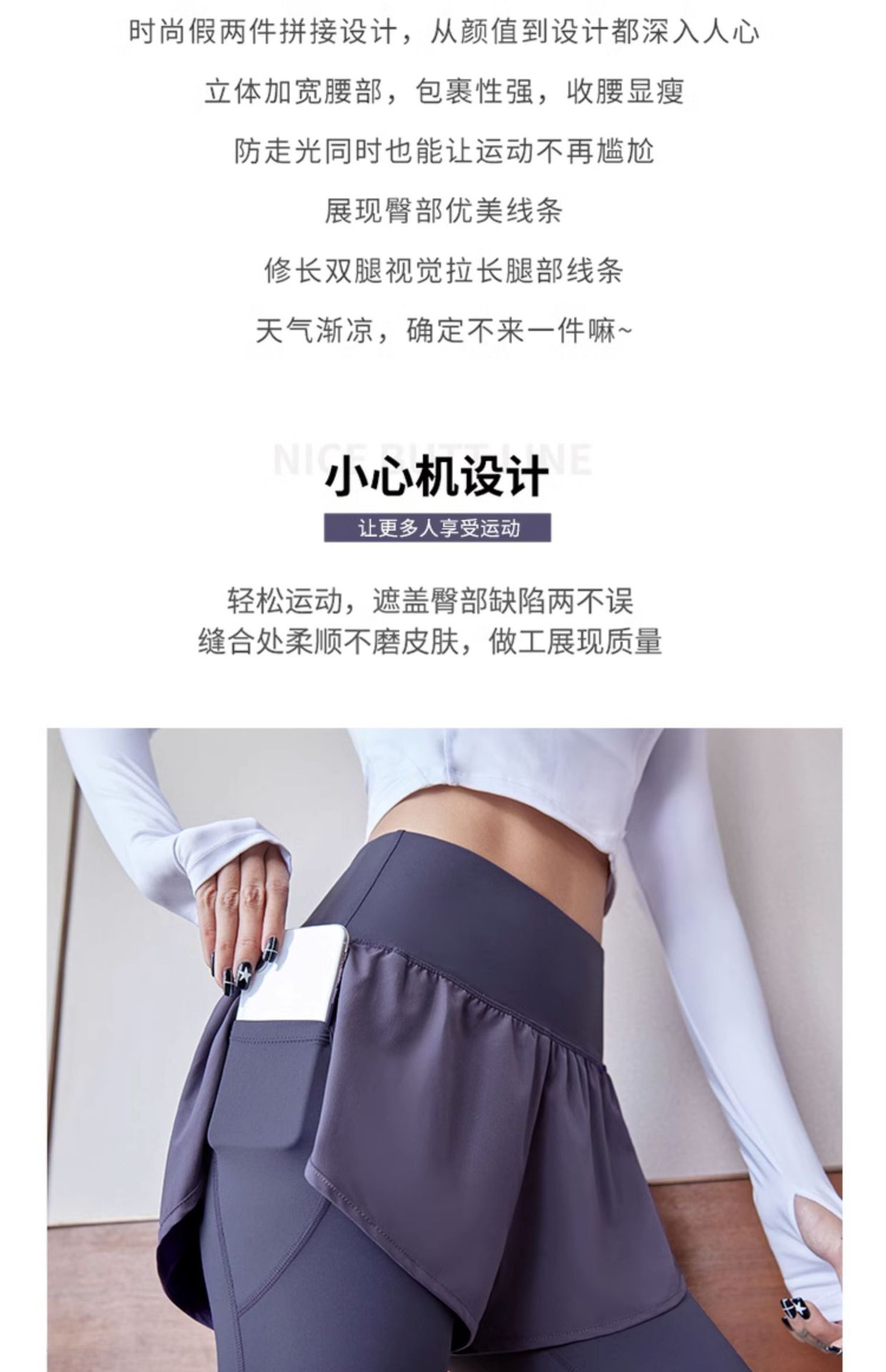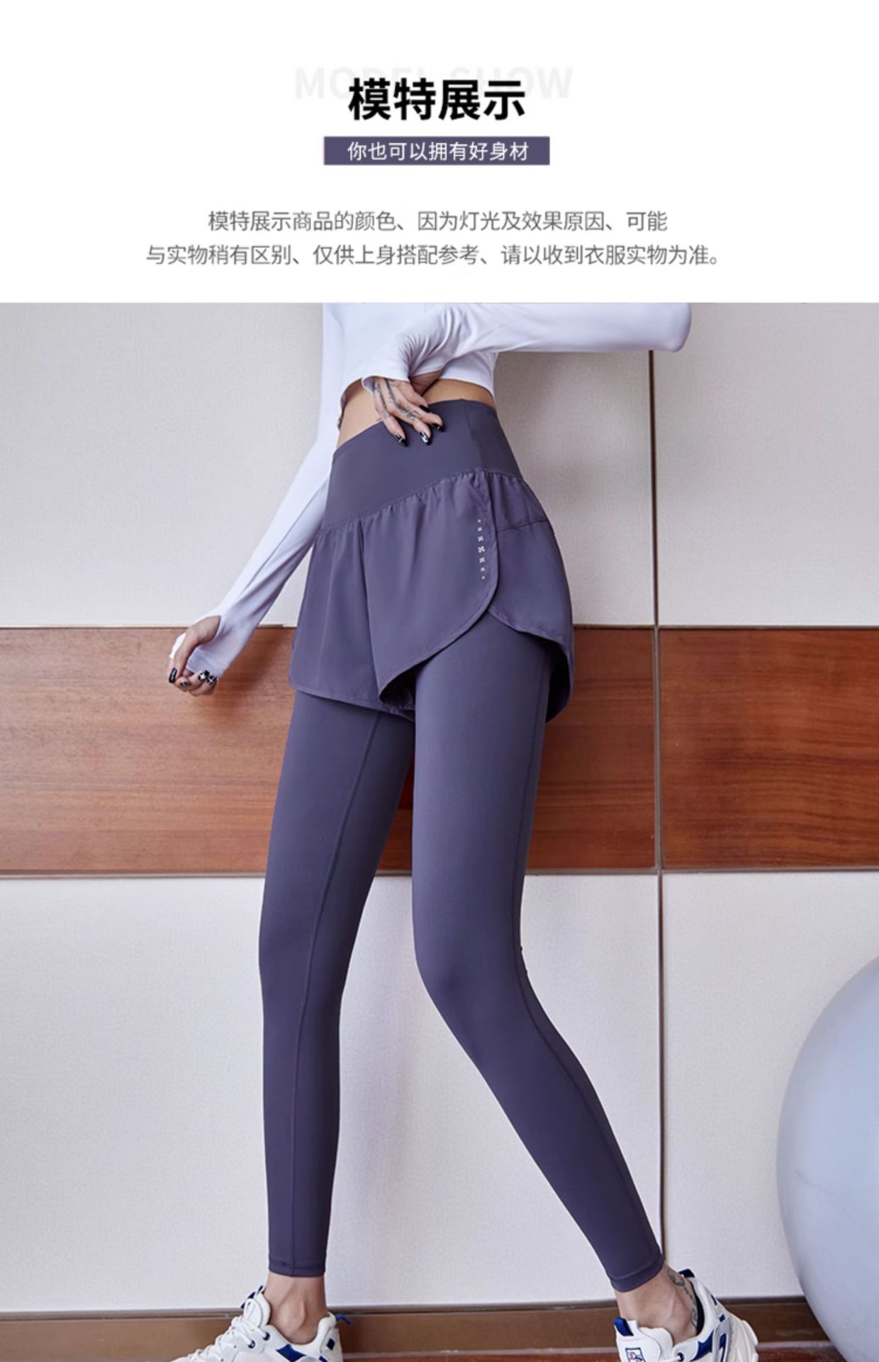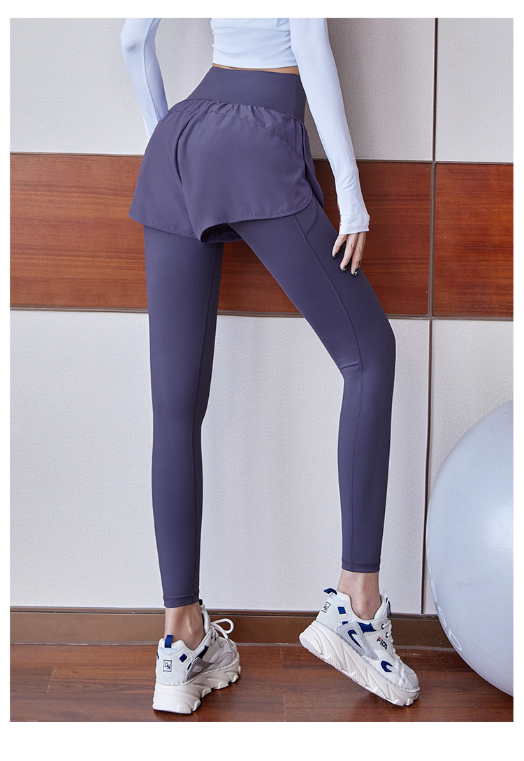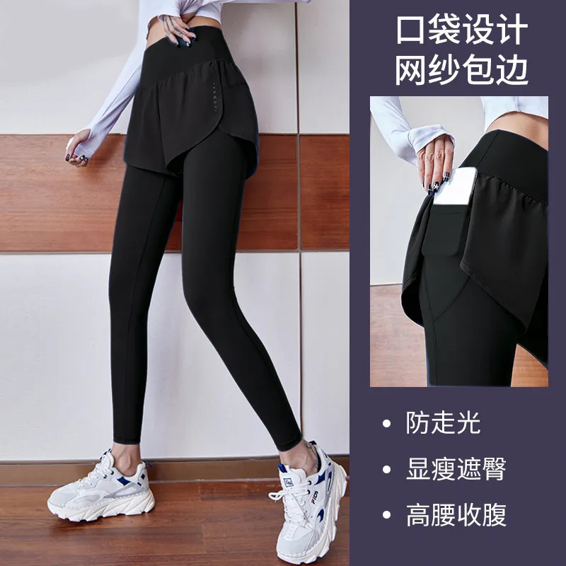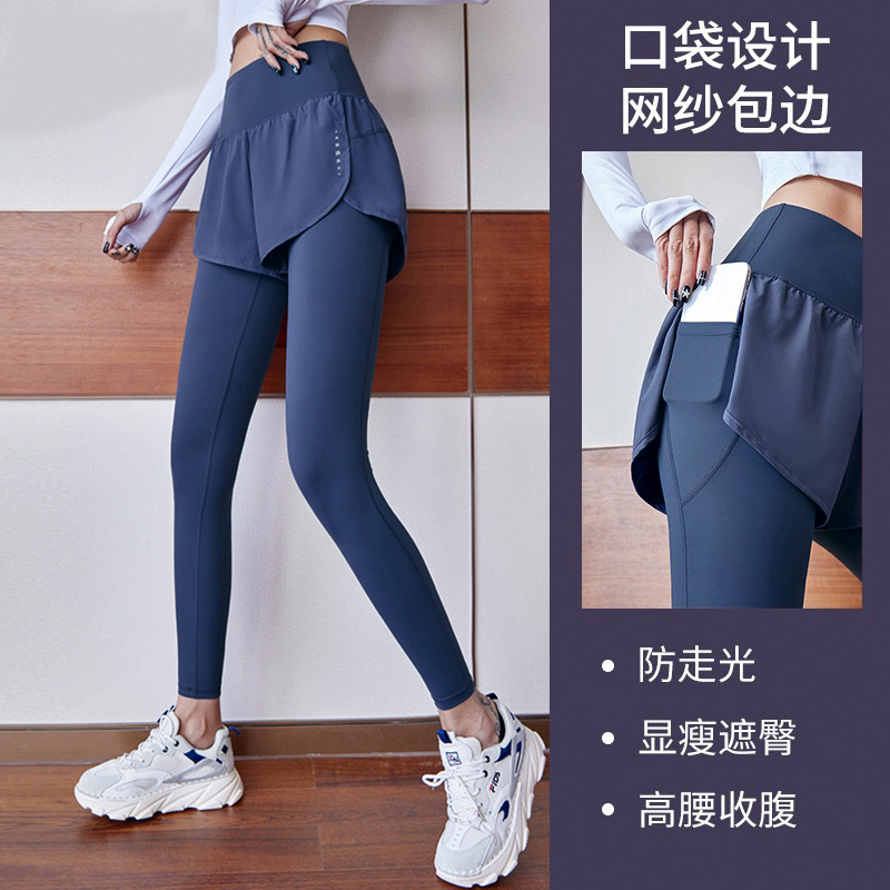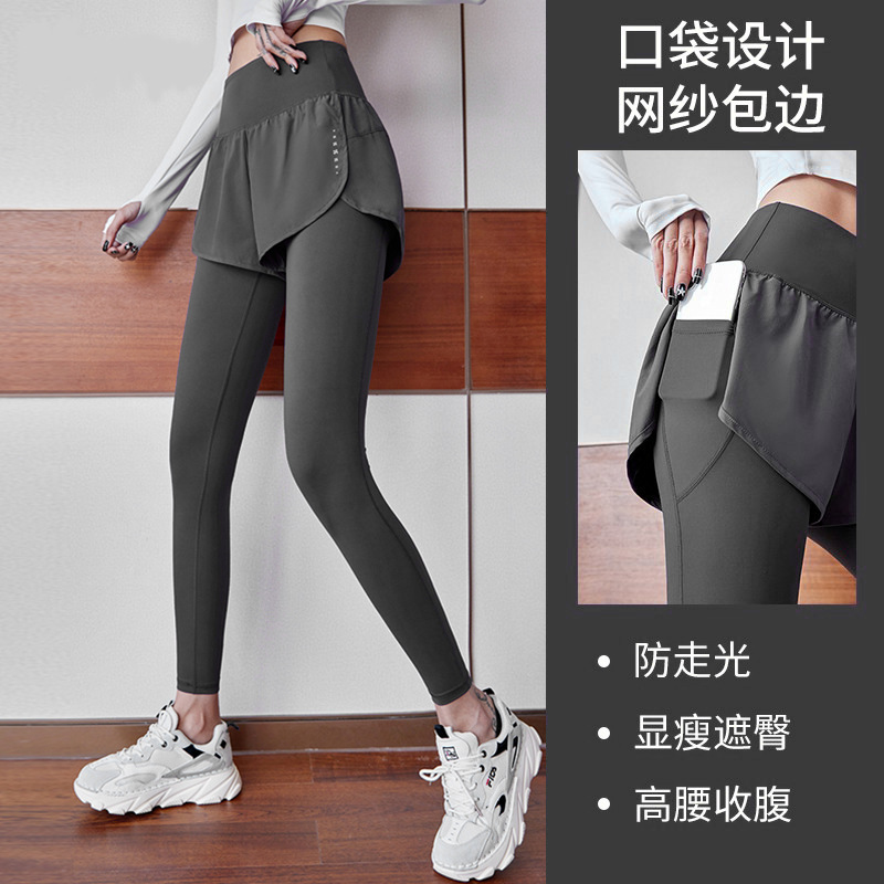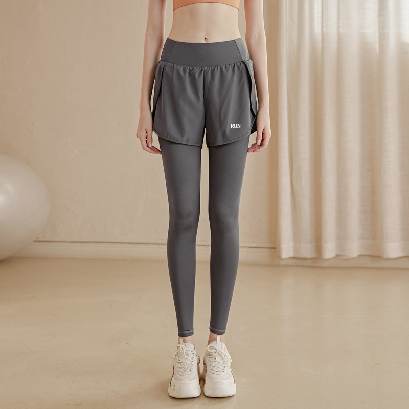 fake two-piece sports trousers women's spring and summer anti-exposure fitness pants badminton clothing running yoga pants high elastic