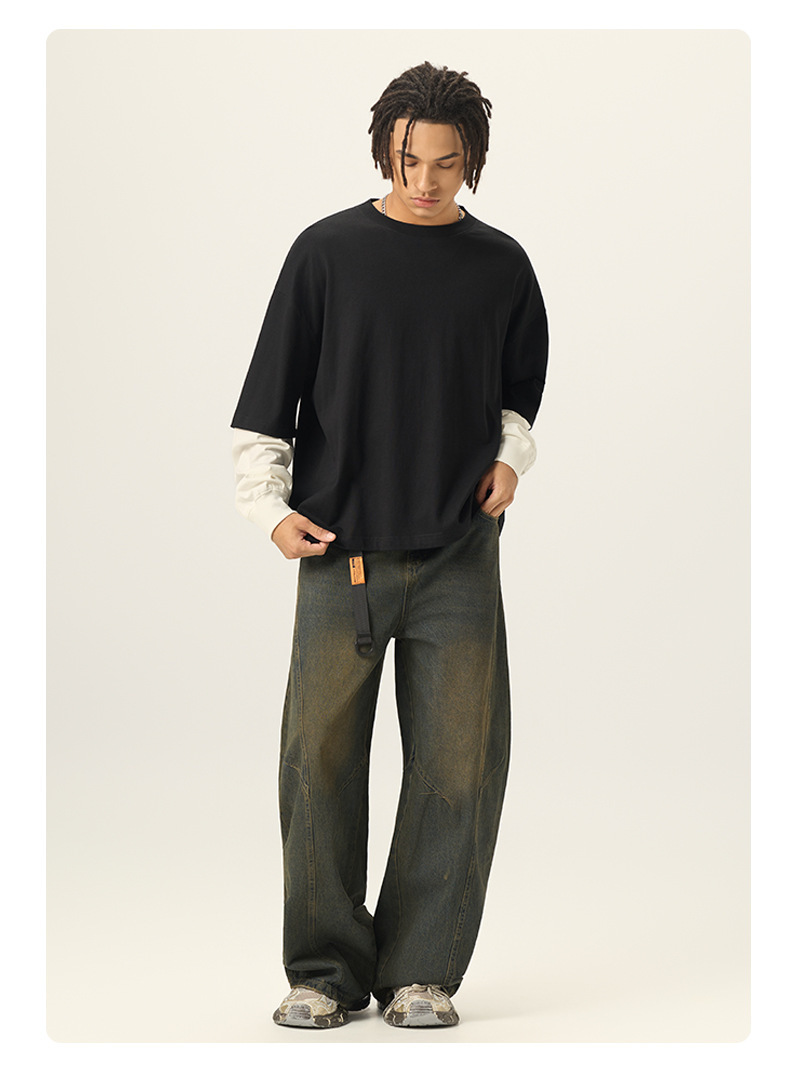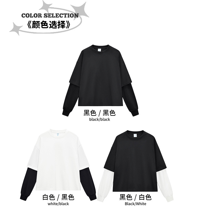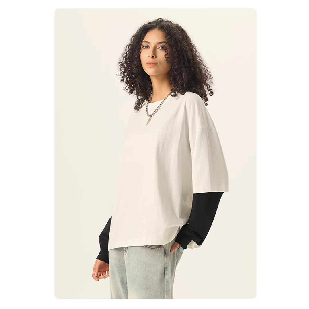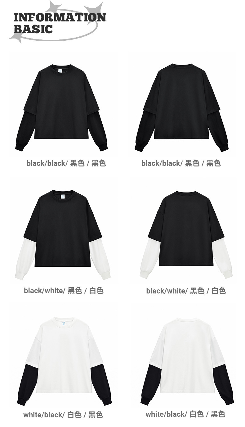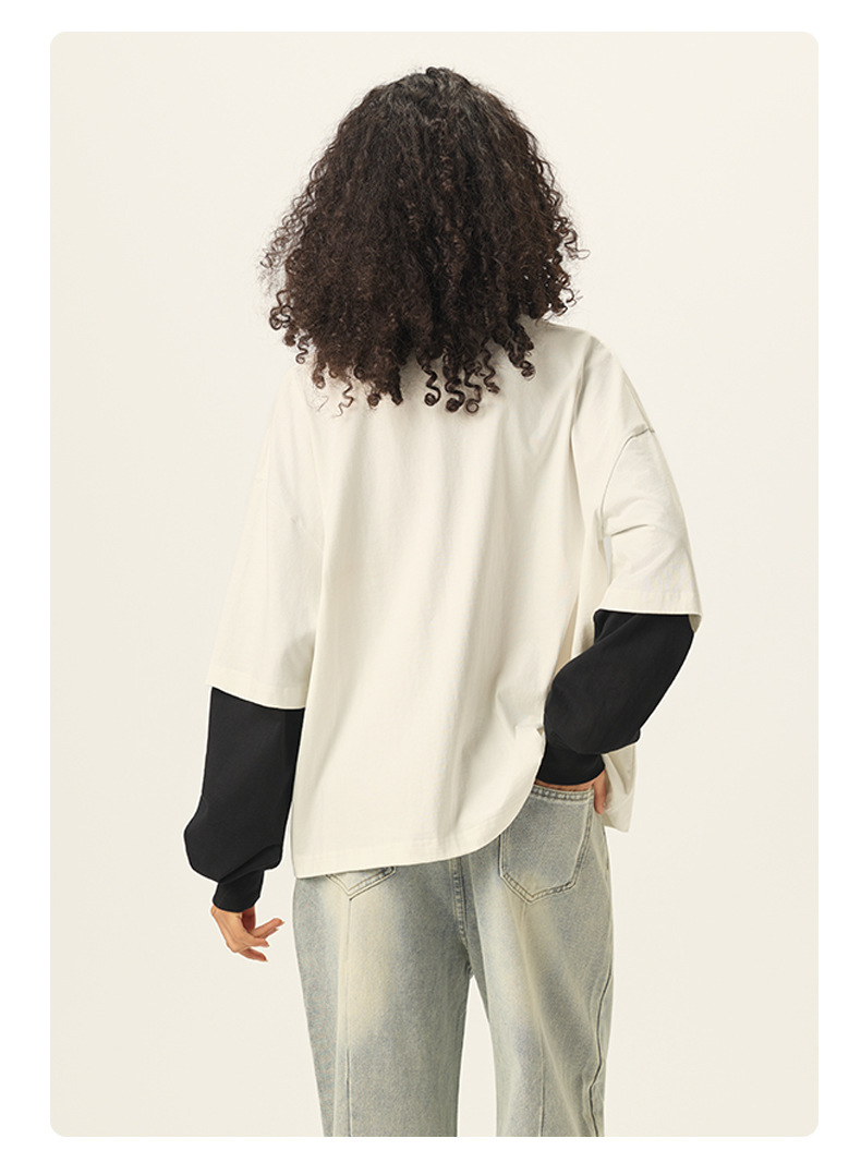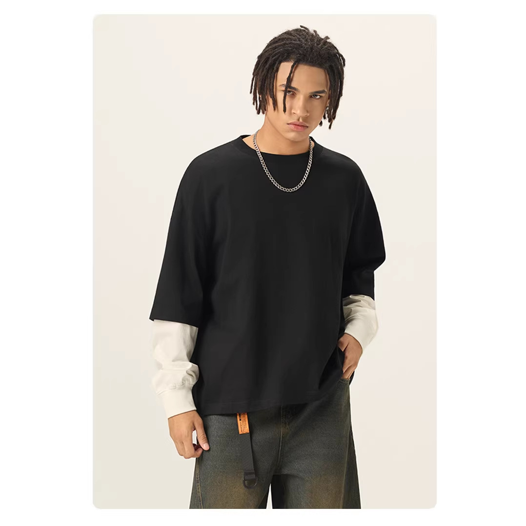 bubble rs men's clothing | cross-border fake two pieces color contrast long sleeve t-shirt g pure cotton short wide boxy american stitching long sleeve