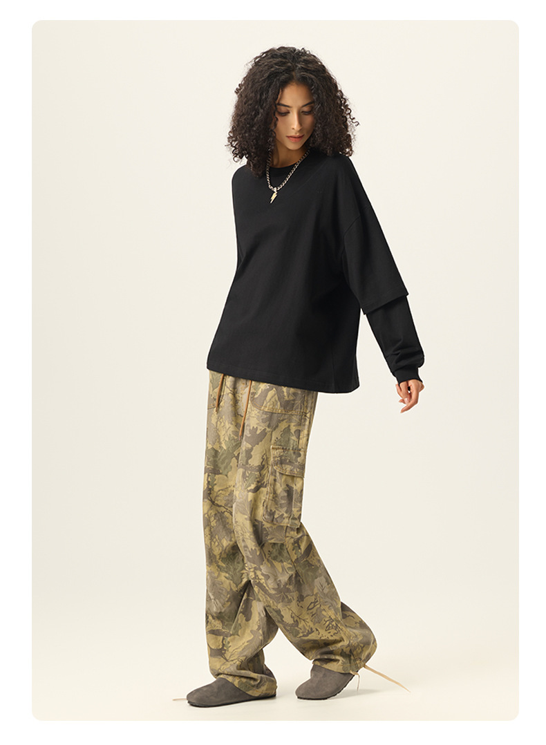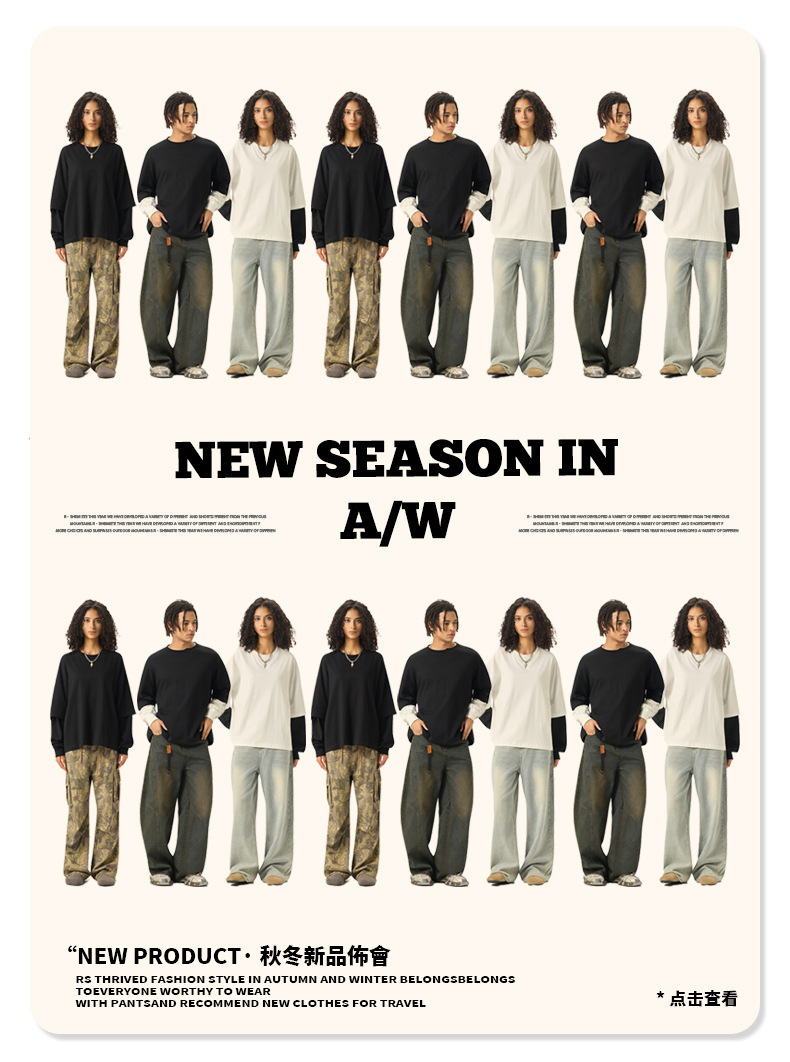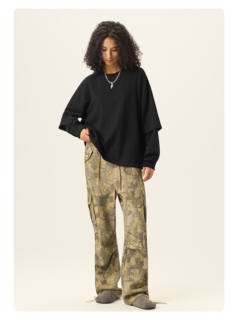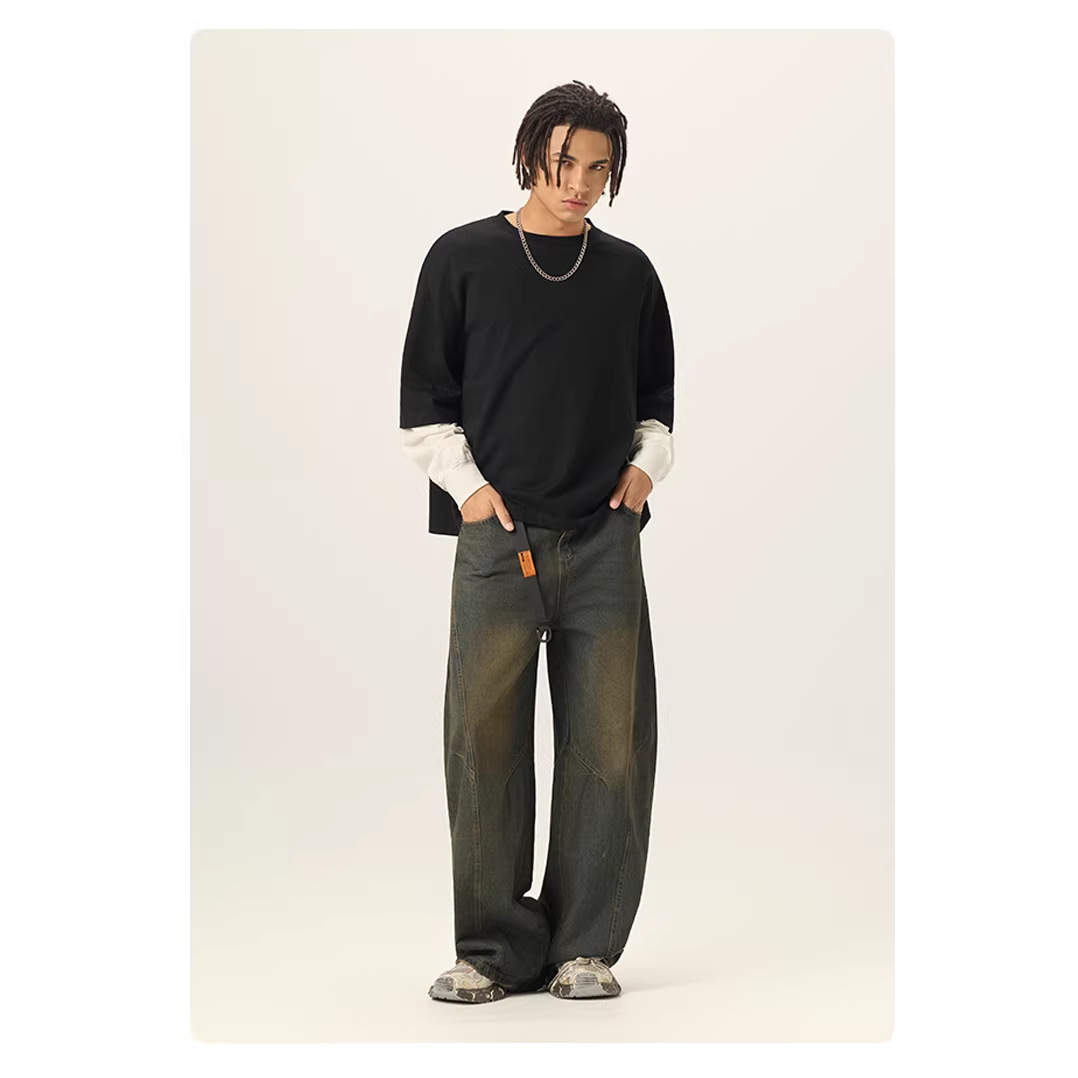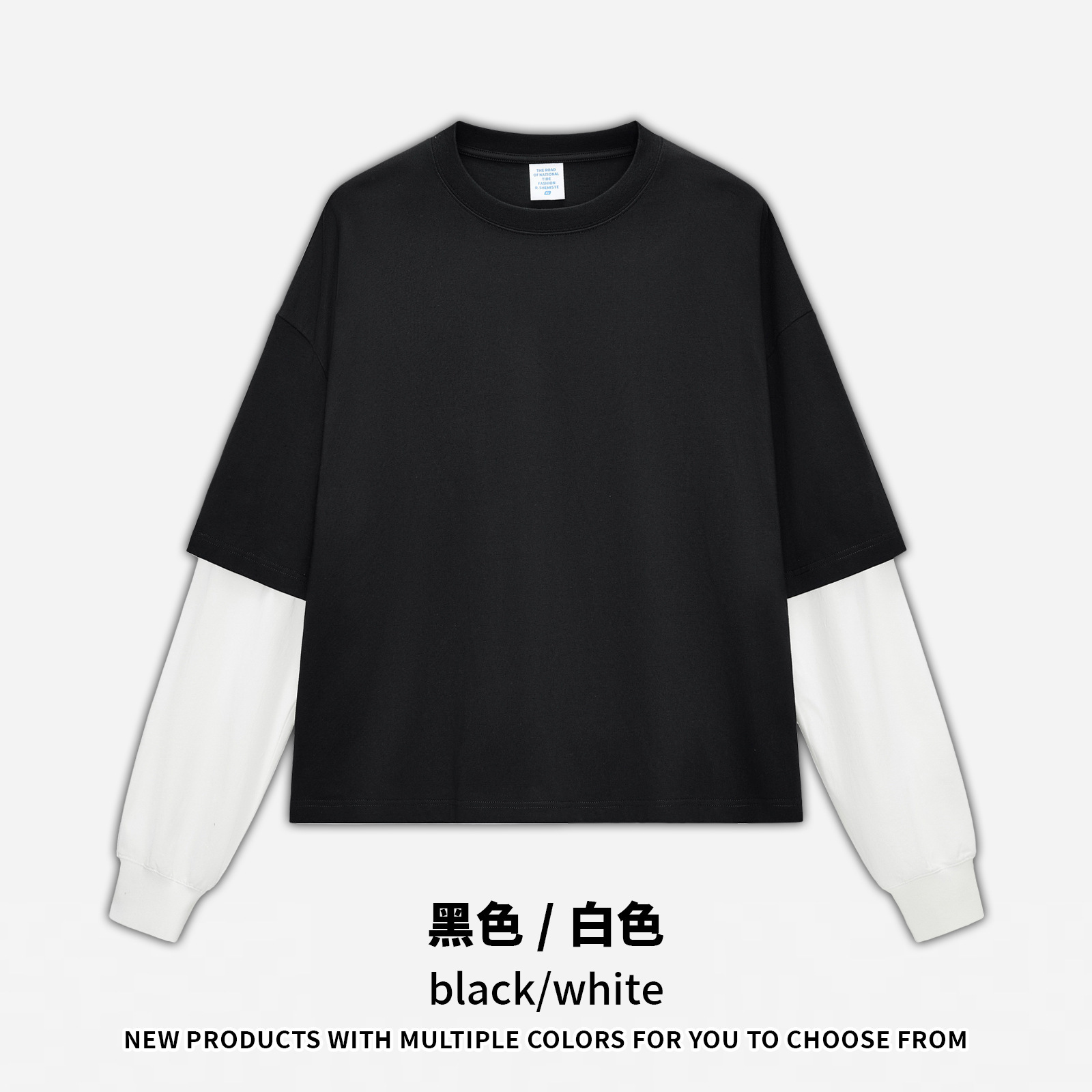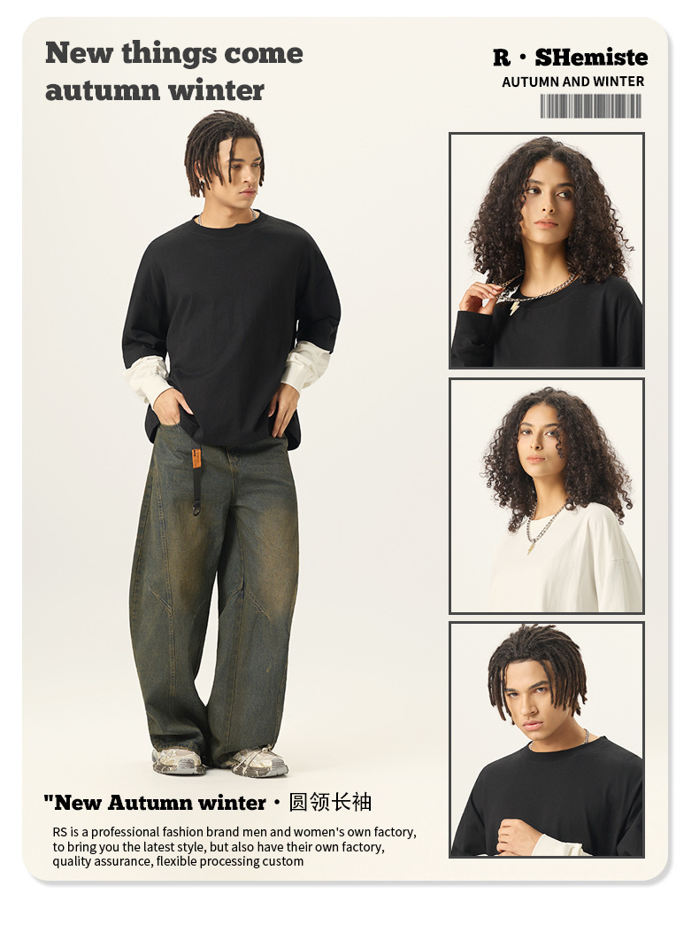 bubble rs men's clothing | cross-border fake two pieces color contrast long sleeve t-shirt g pure cotton short wide boxy american stitching long sleeve