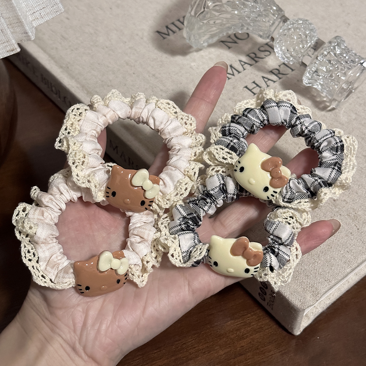 beige plaid lace cat