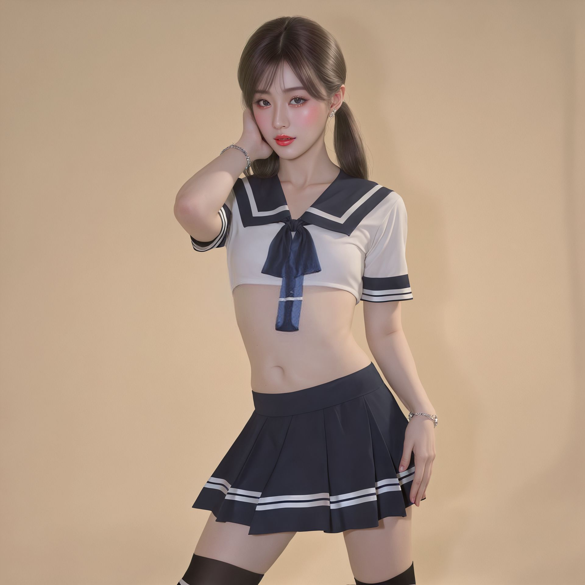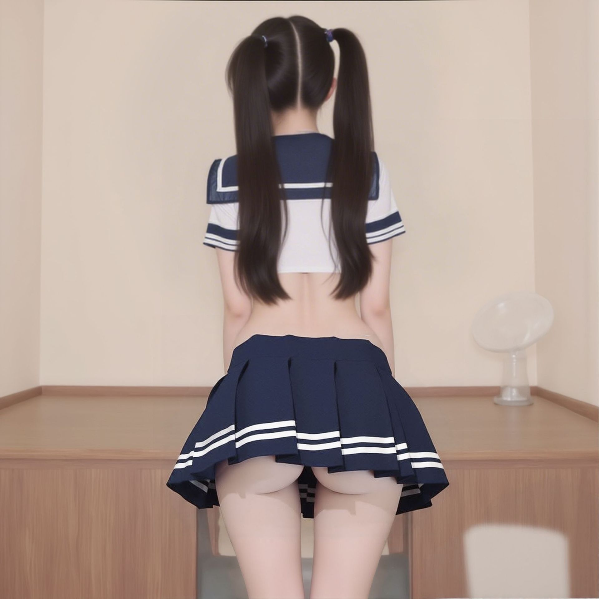 color: student suit, student clothes + black socks white bars students' socks, student clothes