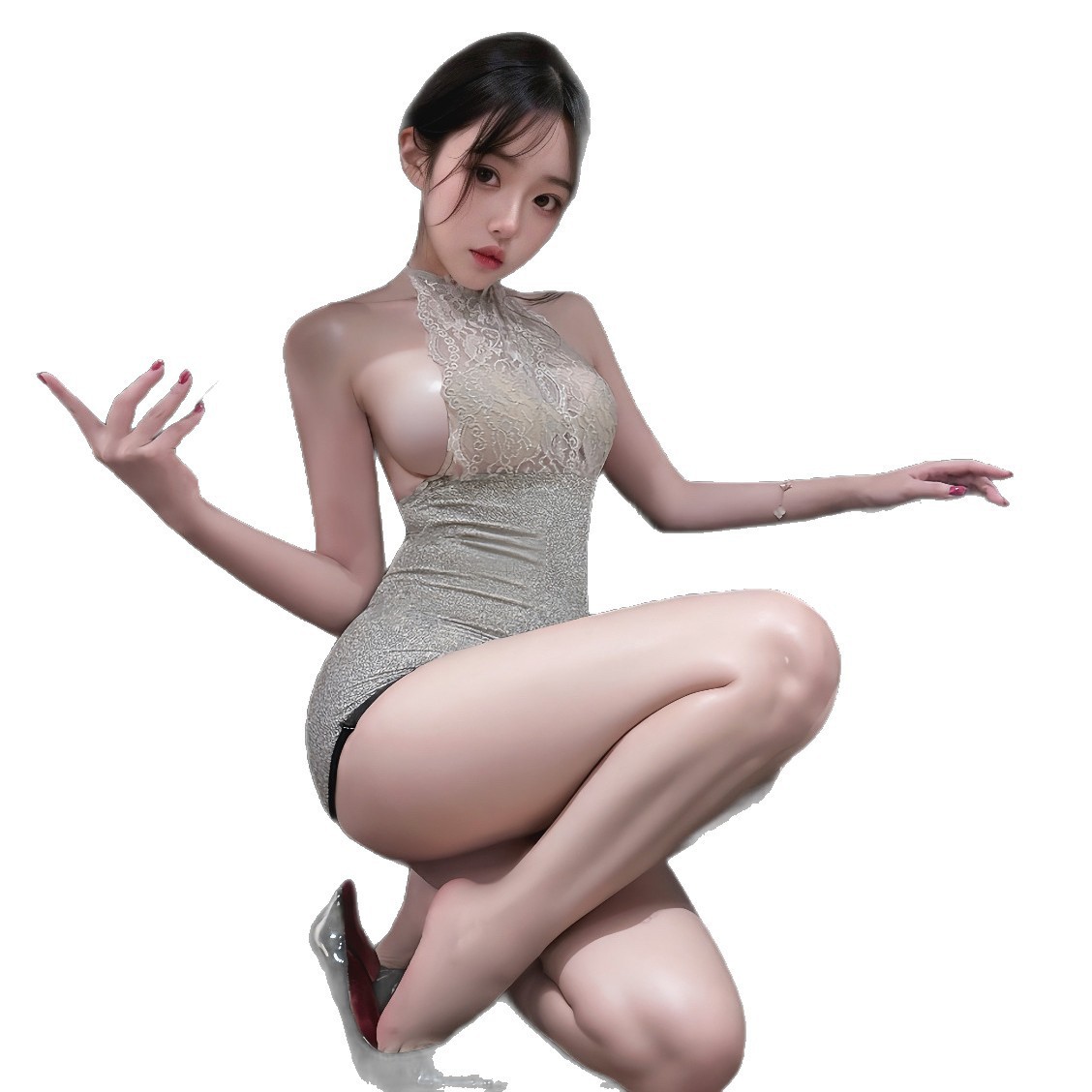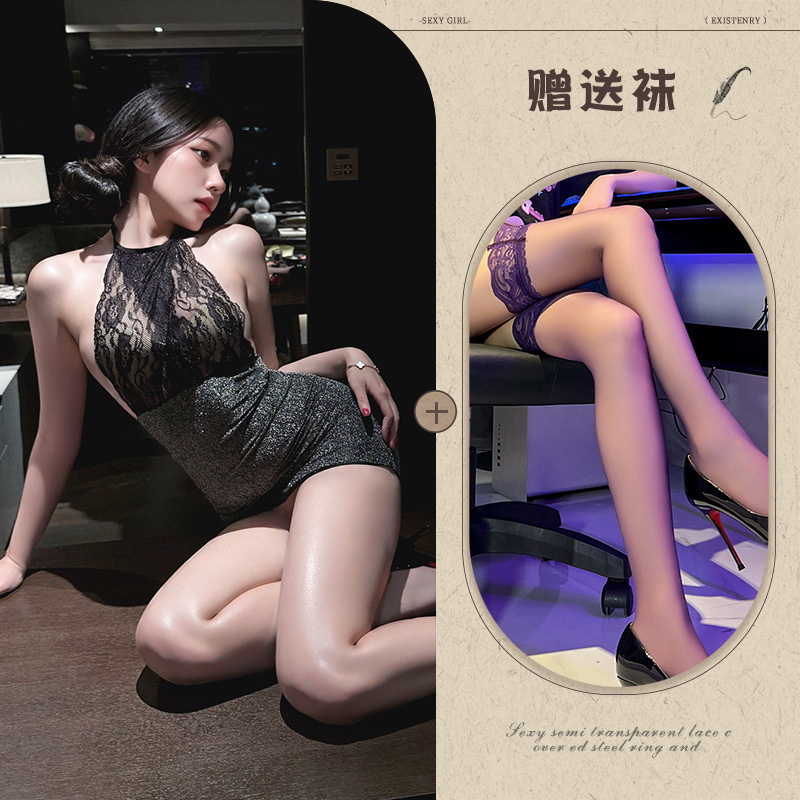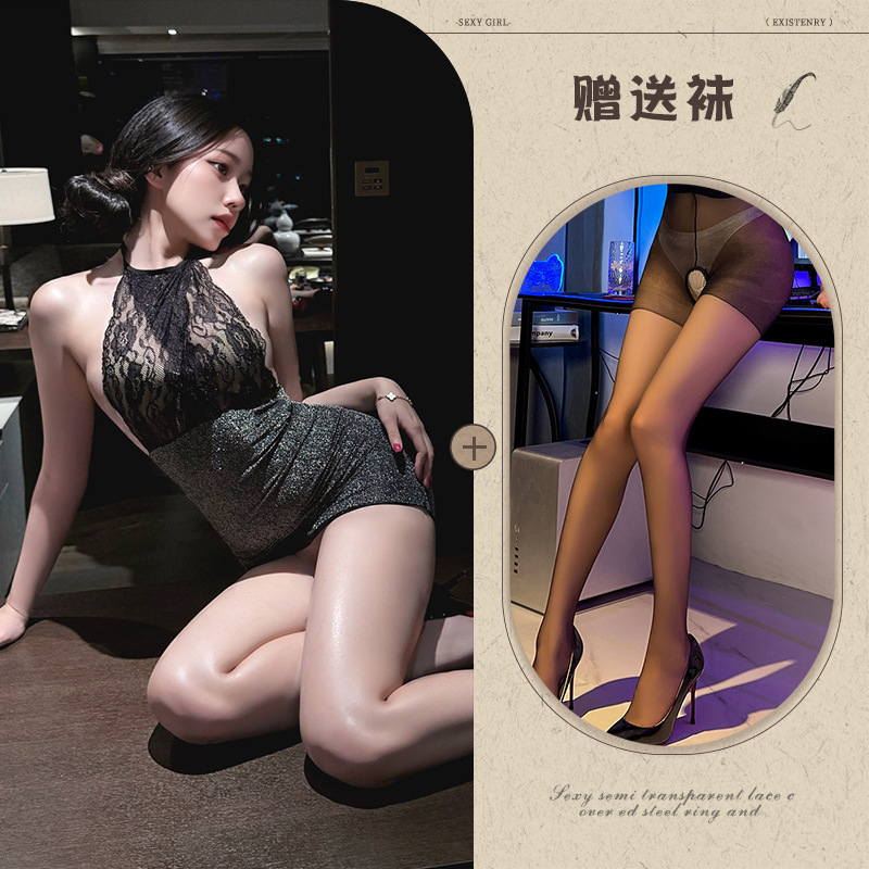 color: black hip-wrapped skirt, black + black mesh stockings, black + black black silk stockings,