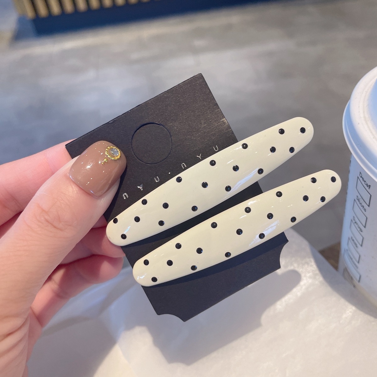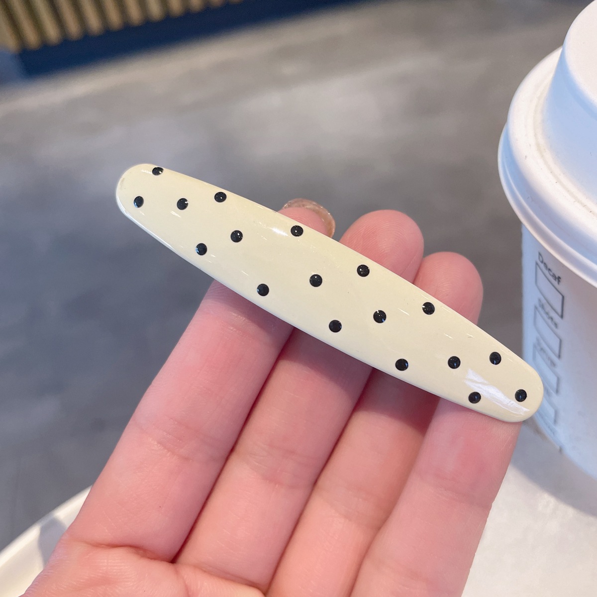 beige-polka dot duckbill clip