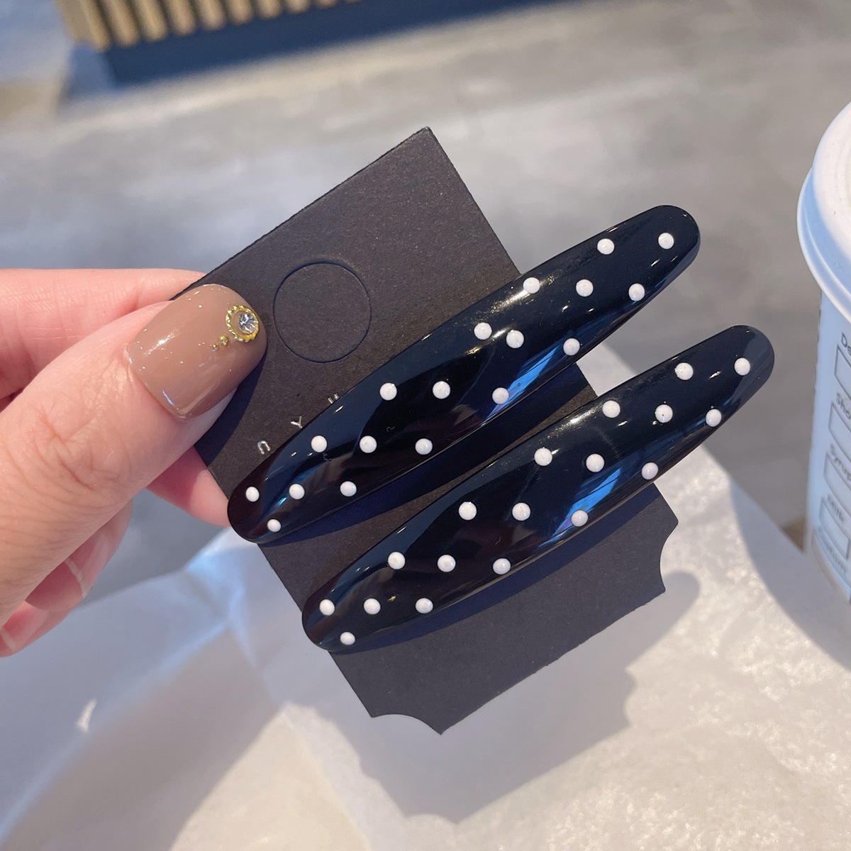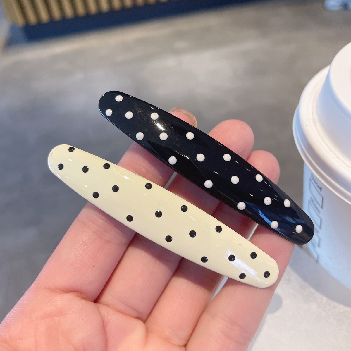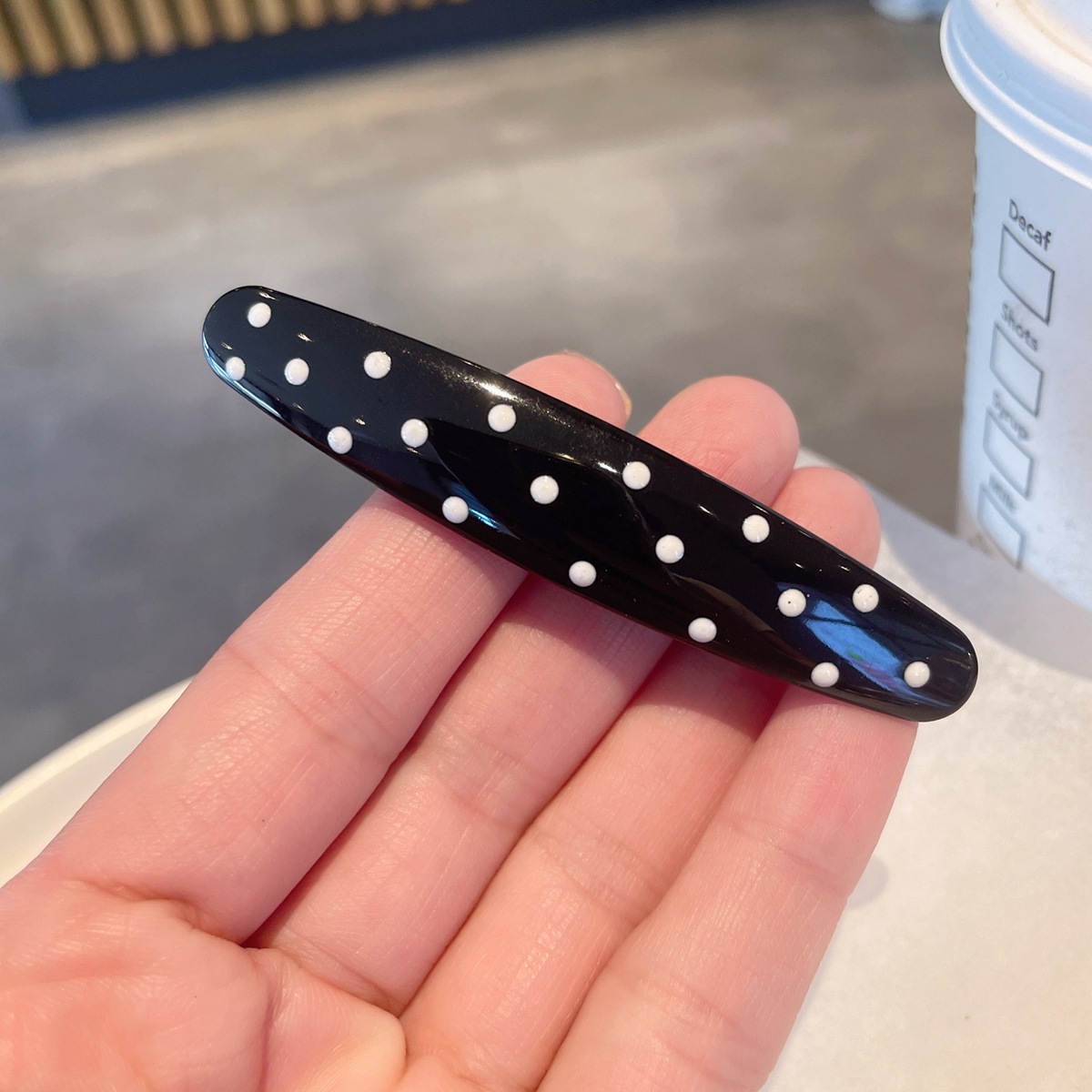 black-polka dot duckbill clip