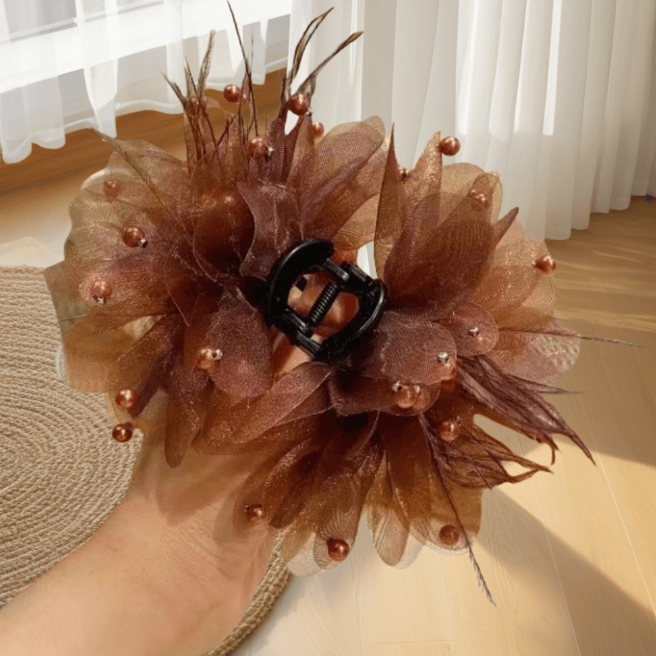 [ya06] feather peony flower grip 13cm [coffee-color]
