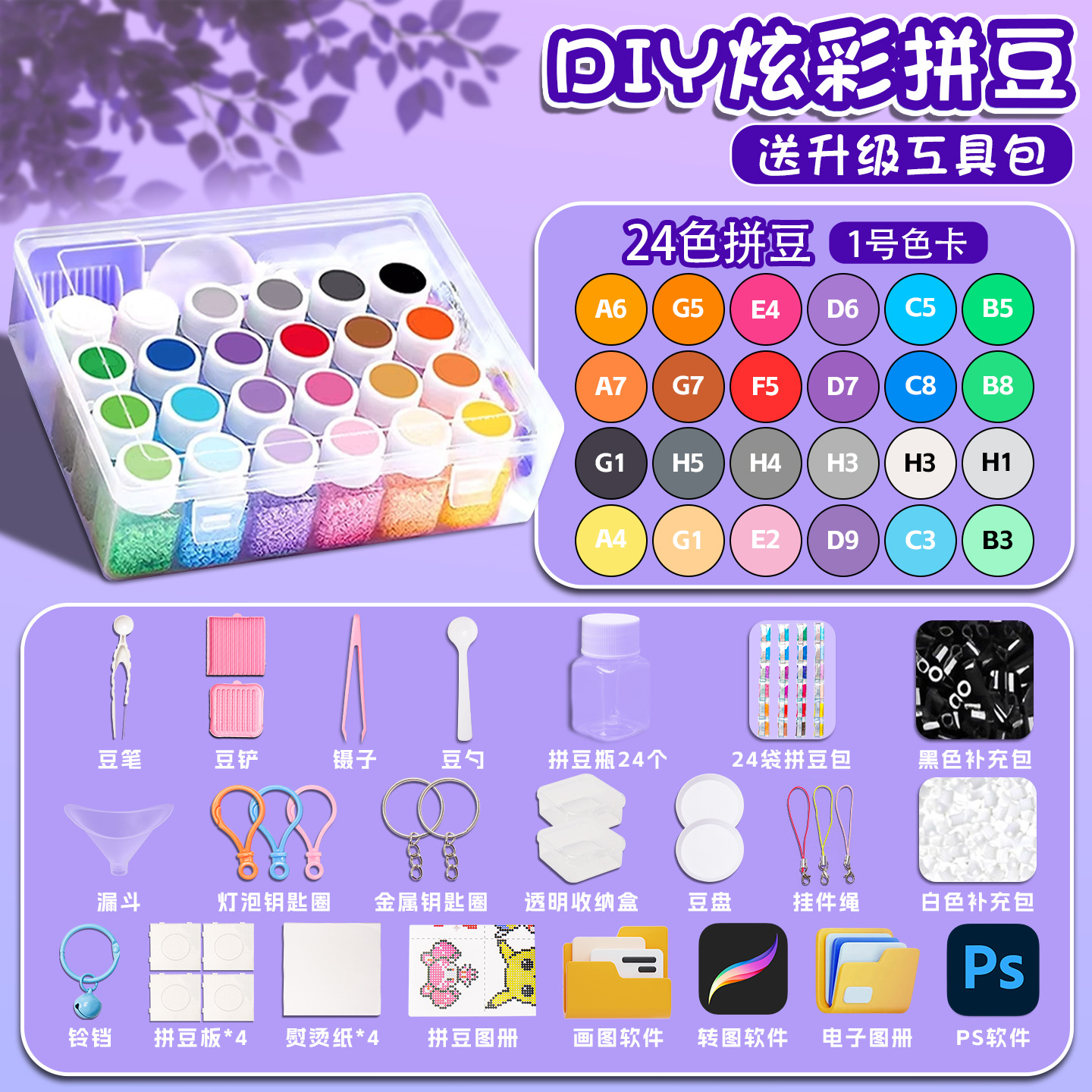 [24 color standard] 1000 pcs/color + pinpindoudou bottles + color number stickers + storage box