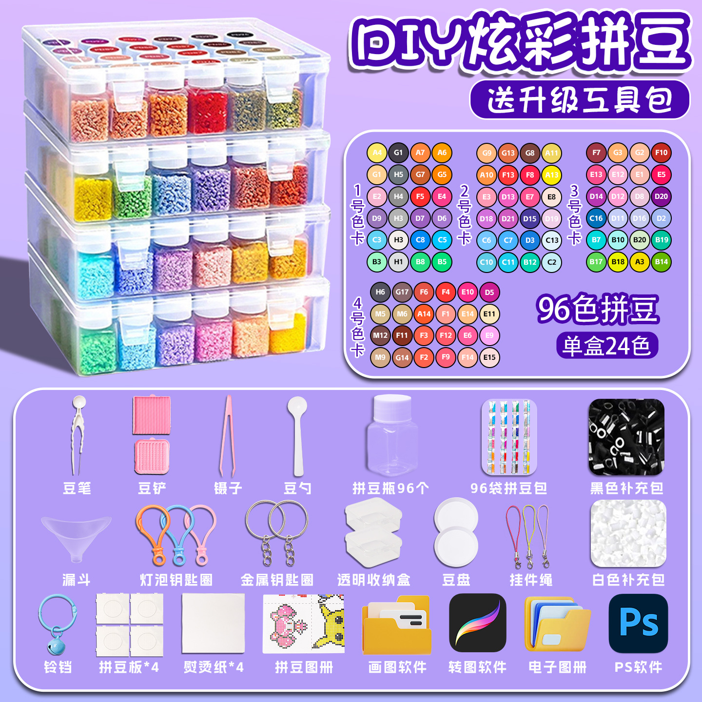 [96 color standard model] 1000 pcs/color + pinpindoudou bottles + color number stickers + storage box