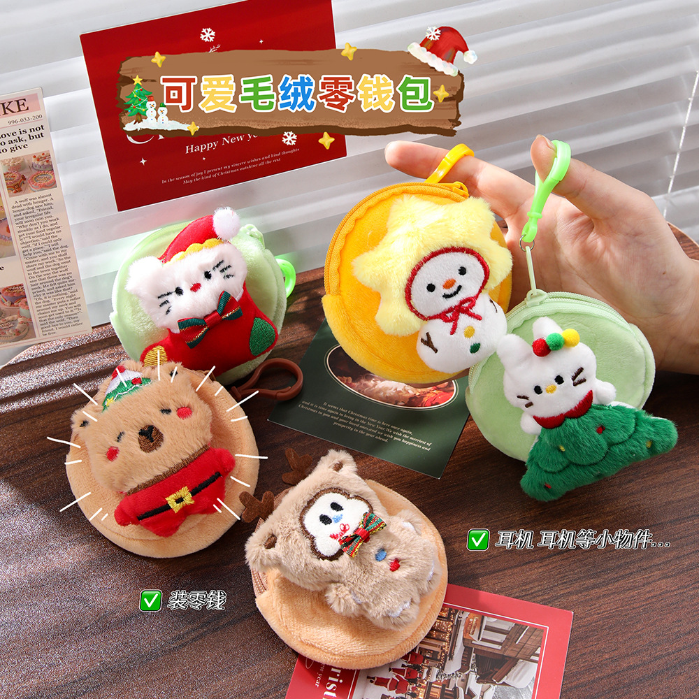 circular section kitten/cute small animal plush coin purse