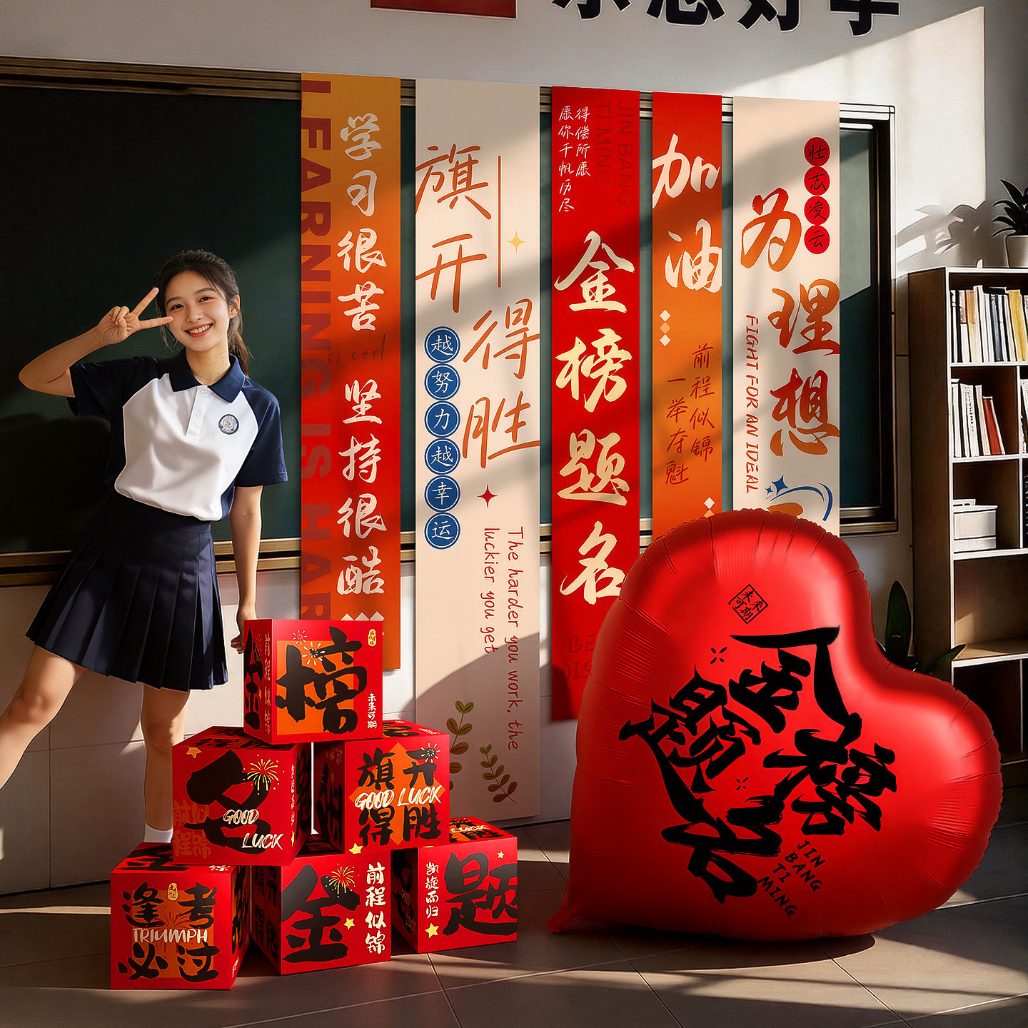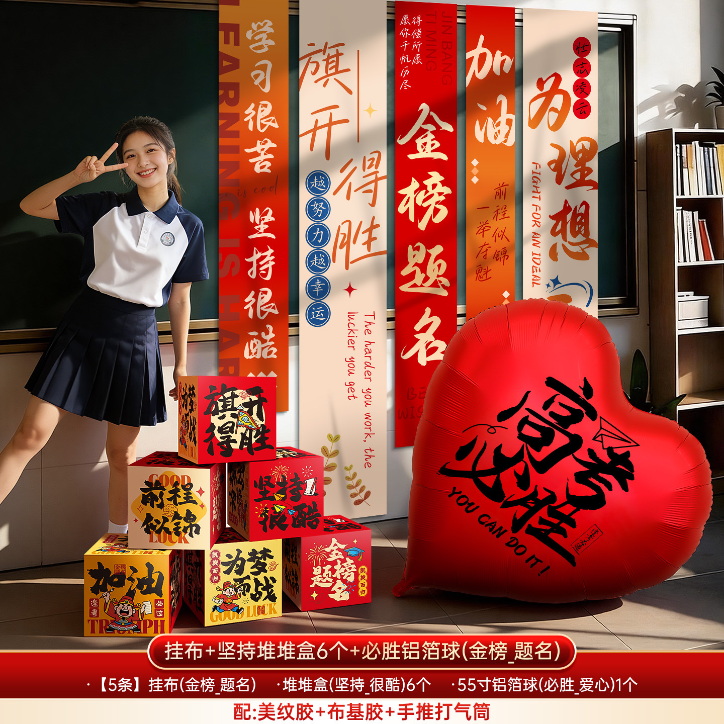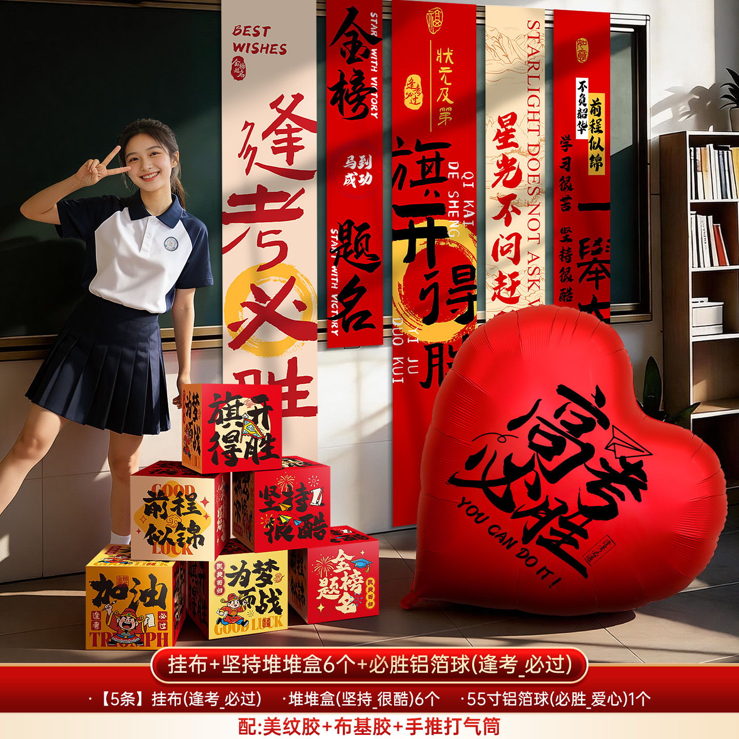qi kaisheng [6] pile style boxes + college entrance examination dream hanging cloth + love balloon