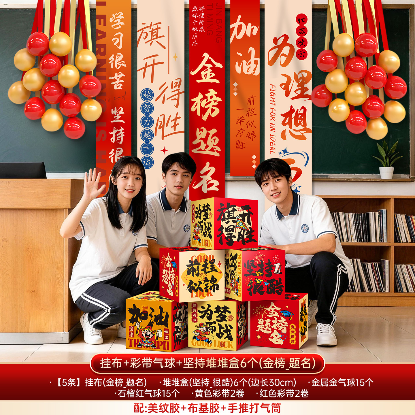 insist on cool [6] pile style boxes + college entrance examination dream hanging cloth + ribbon balloon
