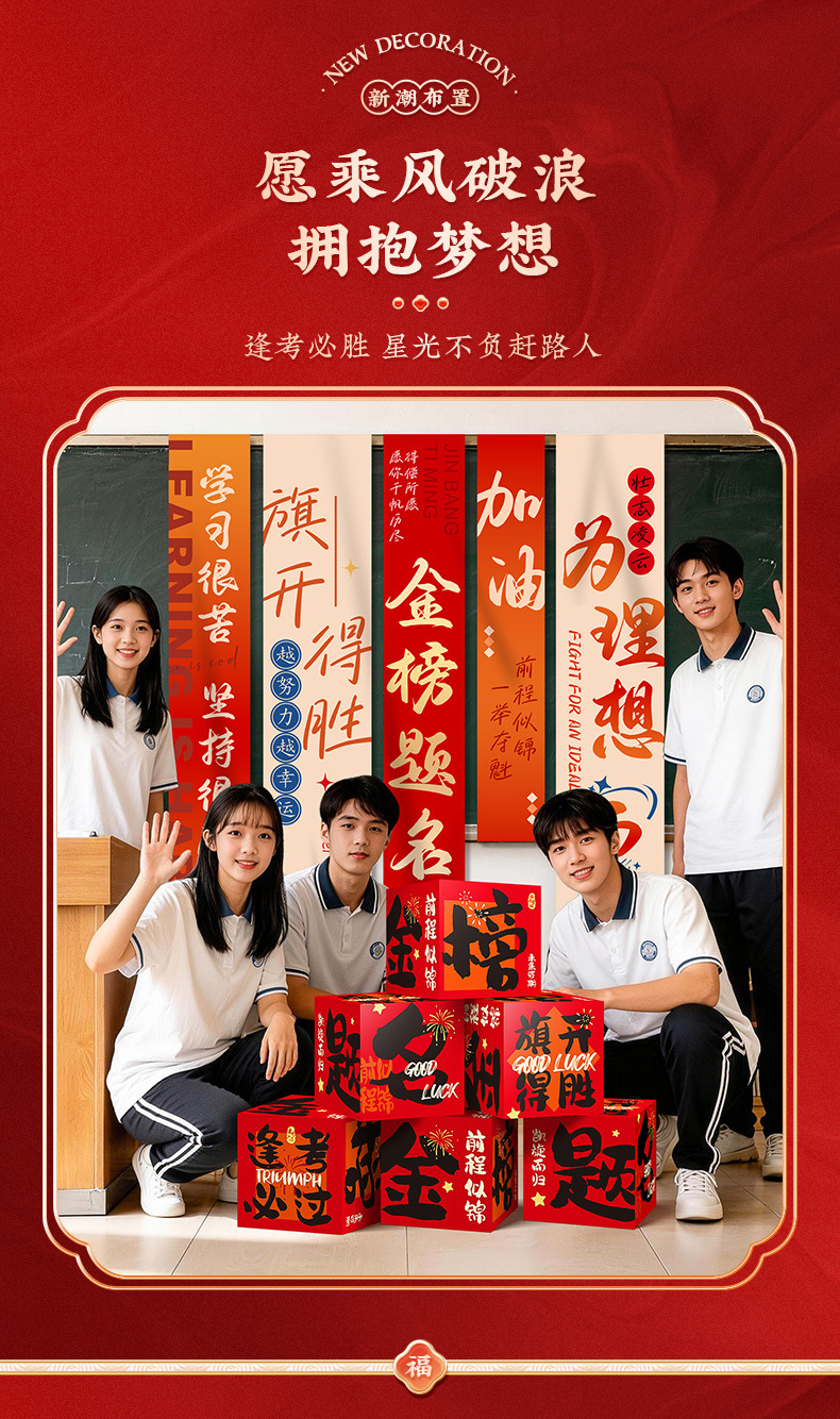 winning the flag [6] pile style boxes + college entrance examination dream hanging cloth