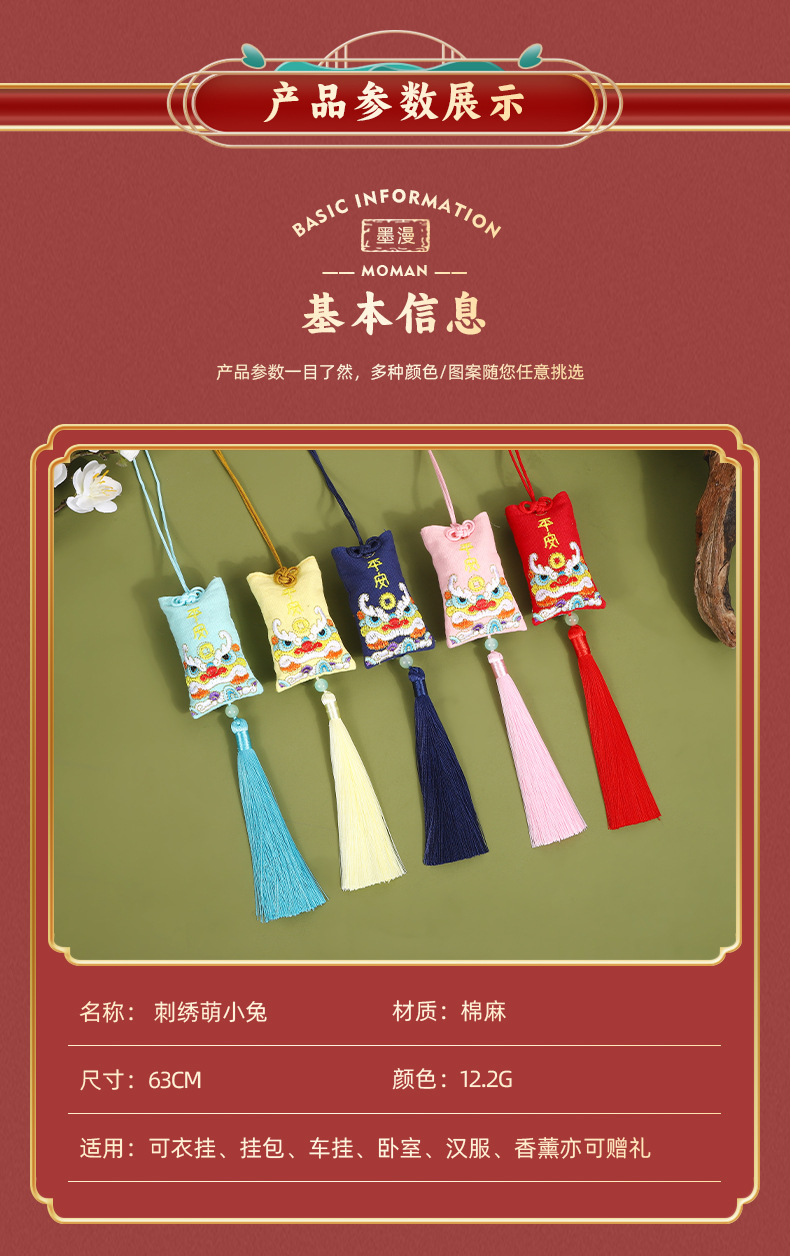 | the tassels are about 12cm long; the sachet is about 7.5cm long; the total length is about 63 cm. | CN¥ 4.77 |