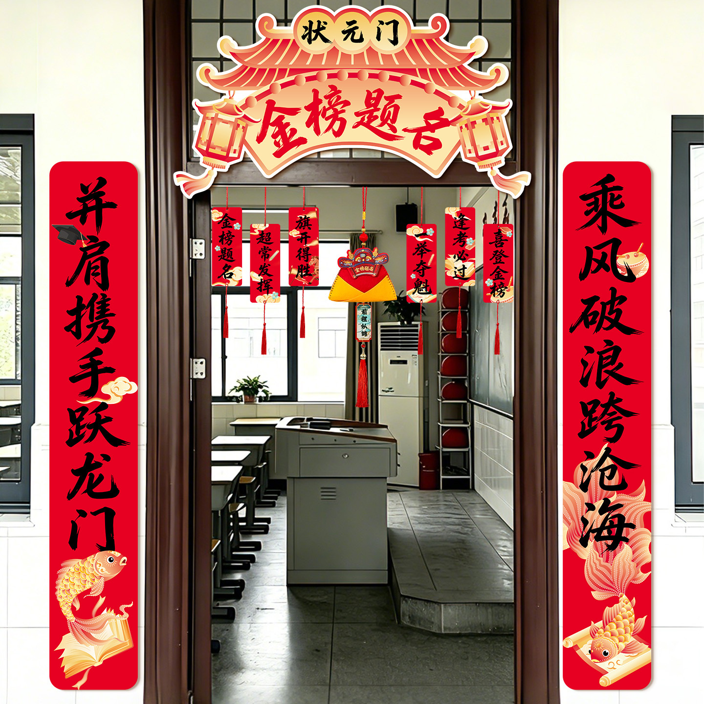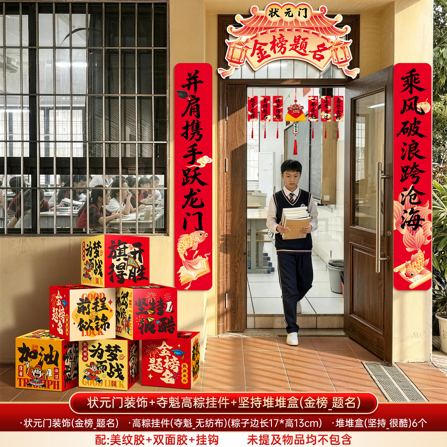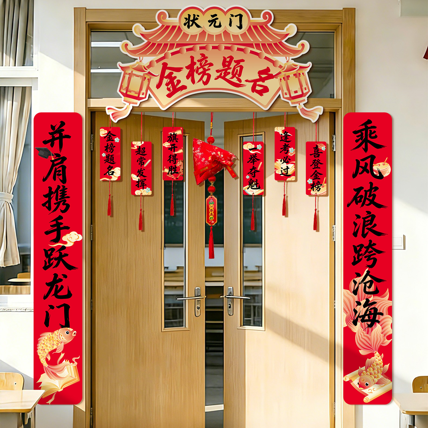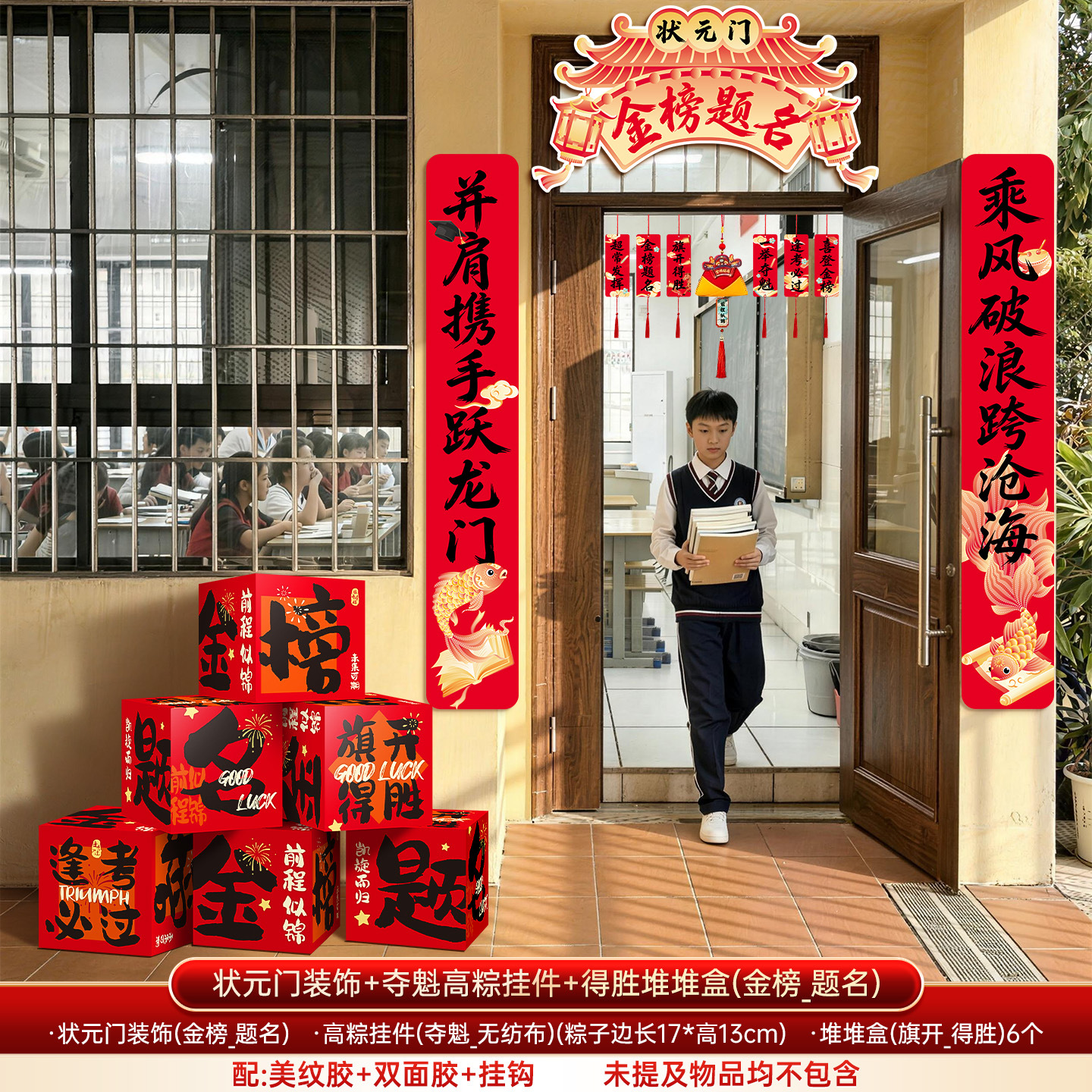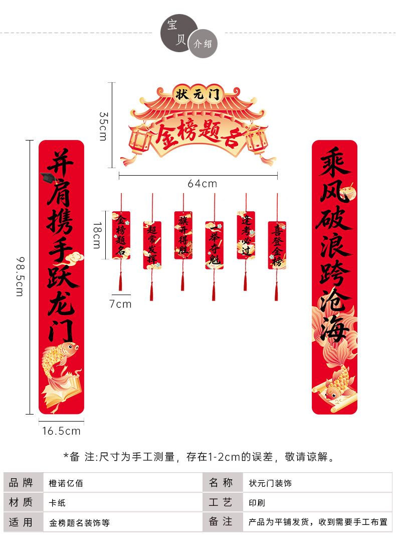 [title of golden list] top door decoration + high pendant (large size title) + winning pile style boxes + hanging cloth