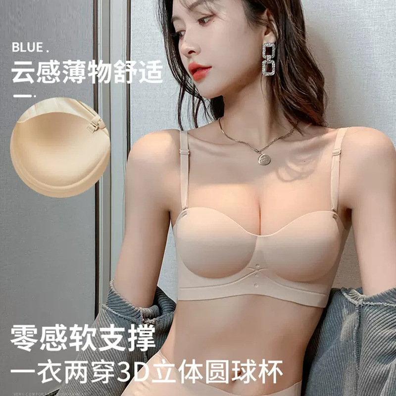 half cup seamless spaghetti strap bra wireless push up tube top women's adjustable sexy underwear bra small chest push up