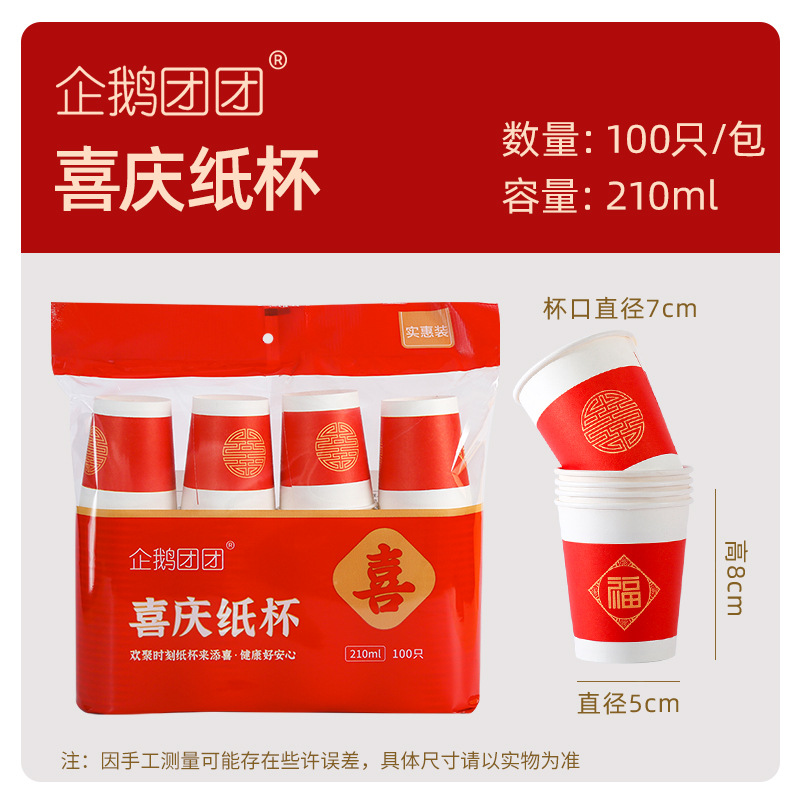 [thickened version] fortune-bringing disposable cups, 100 pcs per pack, 245 ml, ziplock bag